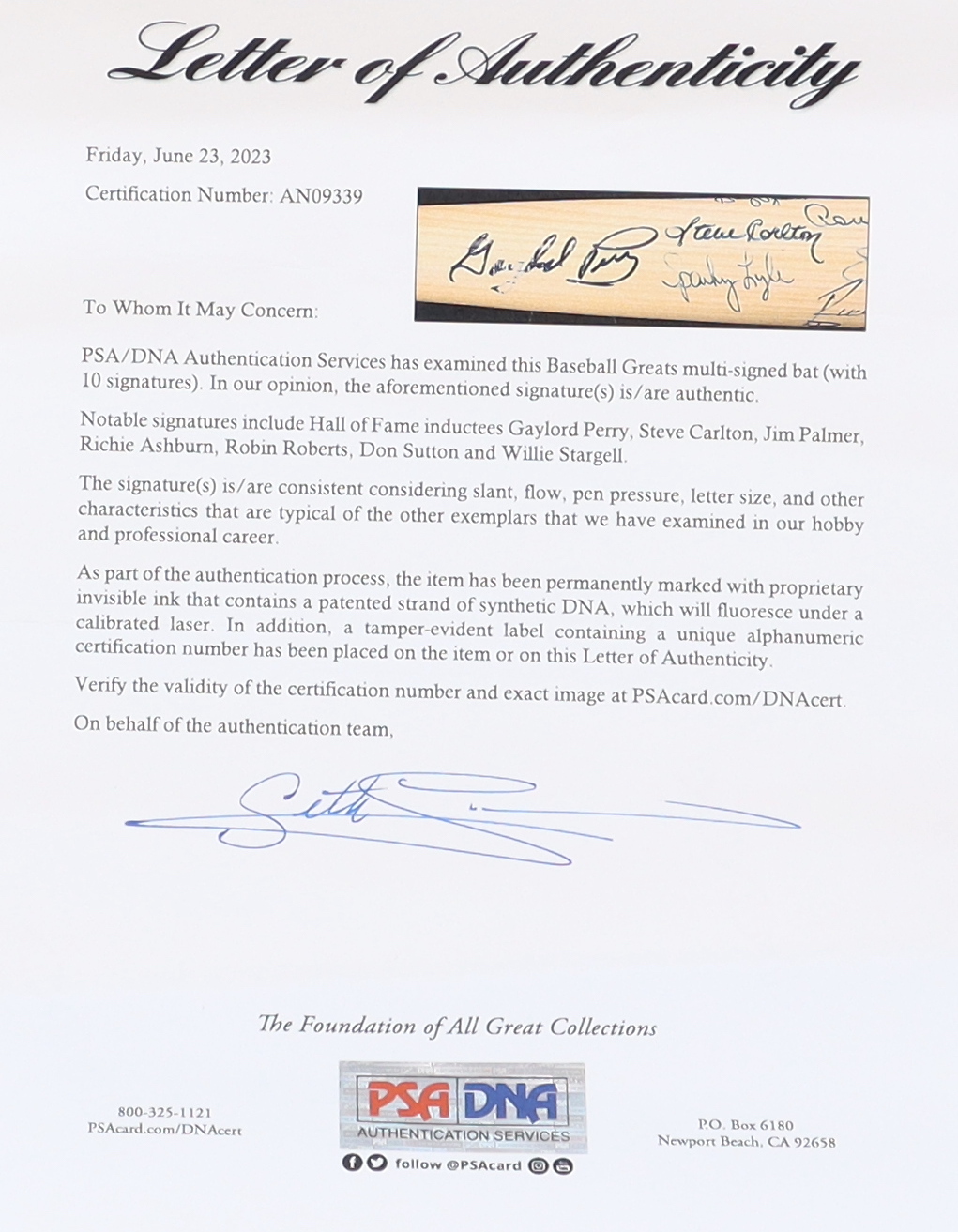 The autograph(s) includes an official PSA/DNA hologram and matching LOA for authenticity purposes.