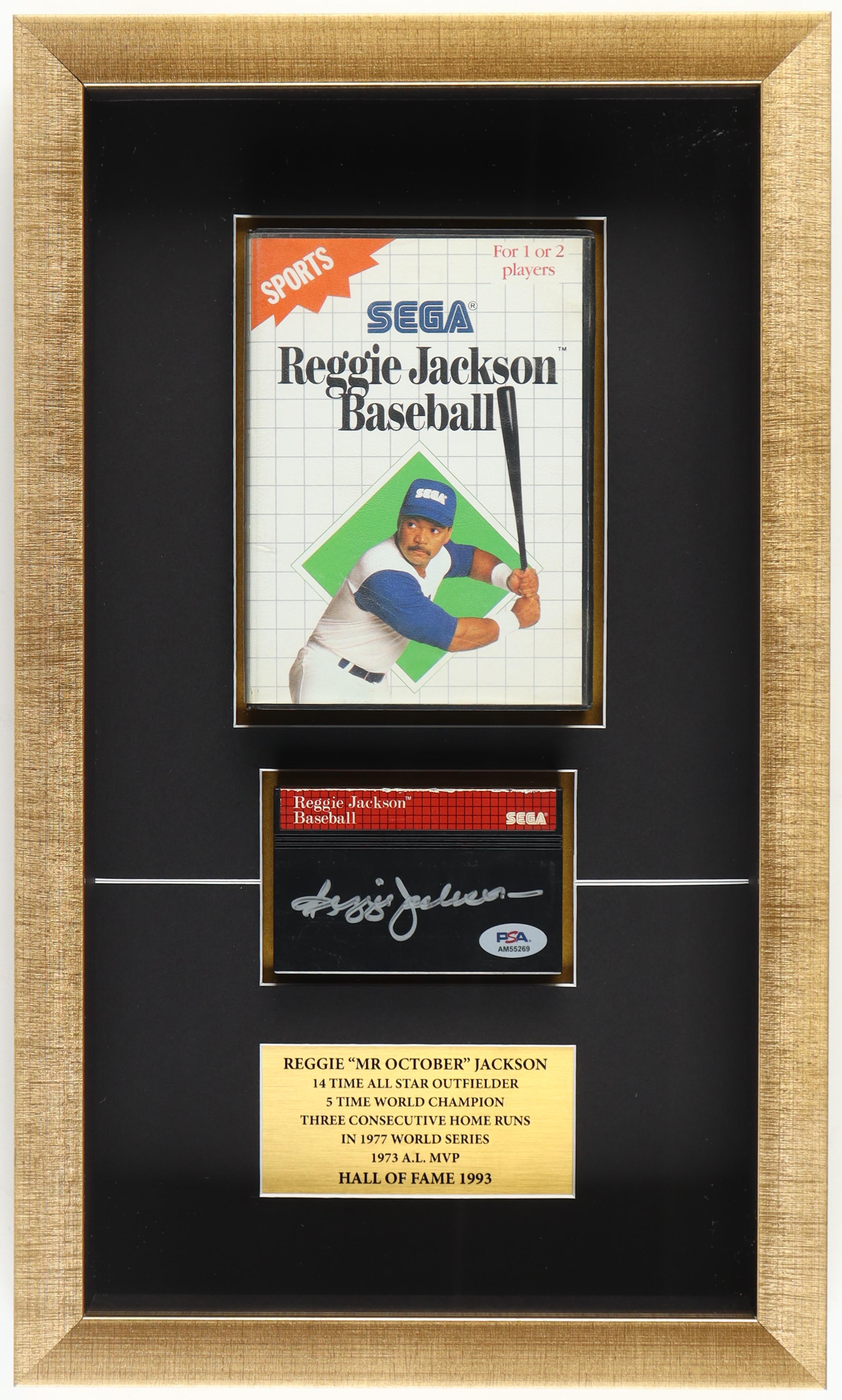 Reggie Jackson Signed 1989 "Reggie Jackson Baseball" Vintage Sega Video Game Cartridge Custom Framed Shadowbox Display with Original Case (PSA)
