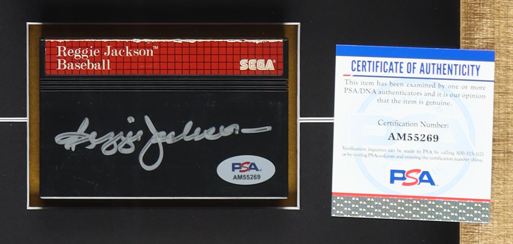 Custom frame measures 12" x 20" in size and features a vintage game cartridge that has been hand-signed by Reggie Jackson (New York Yankees, HOF).