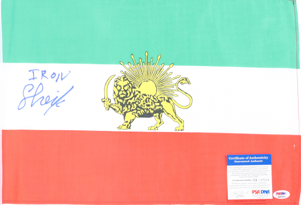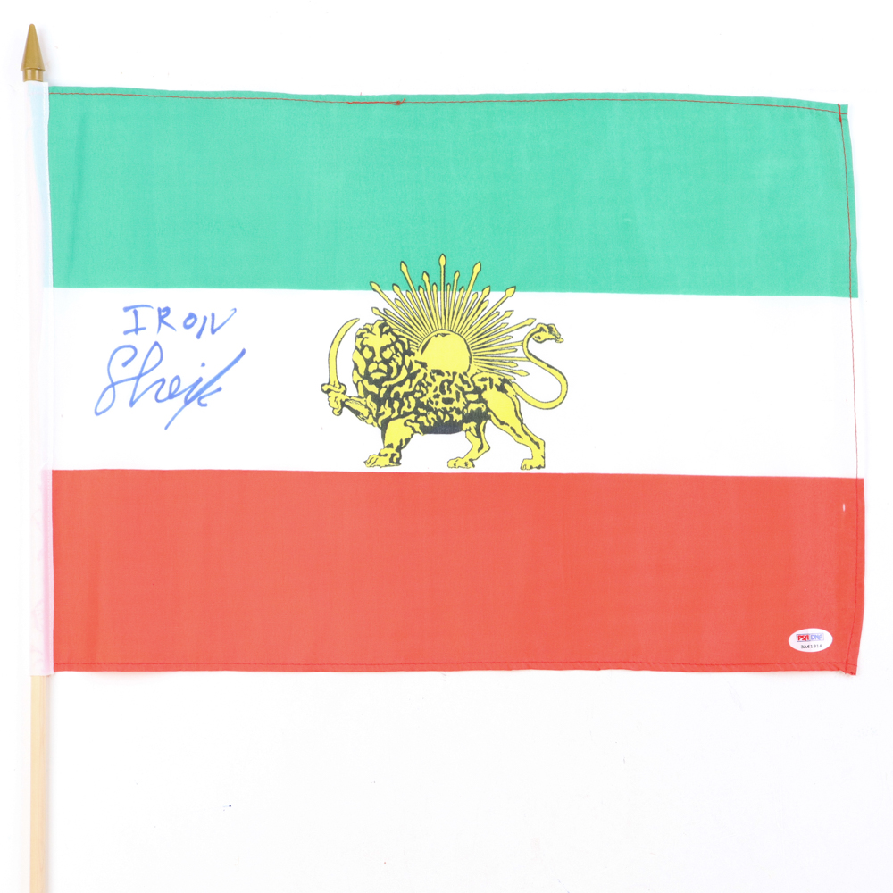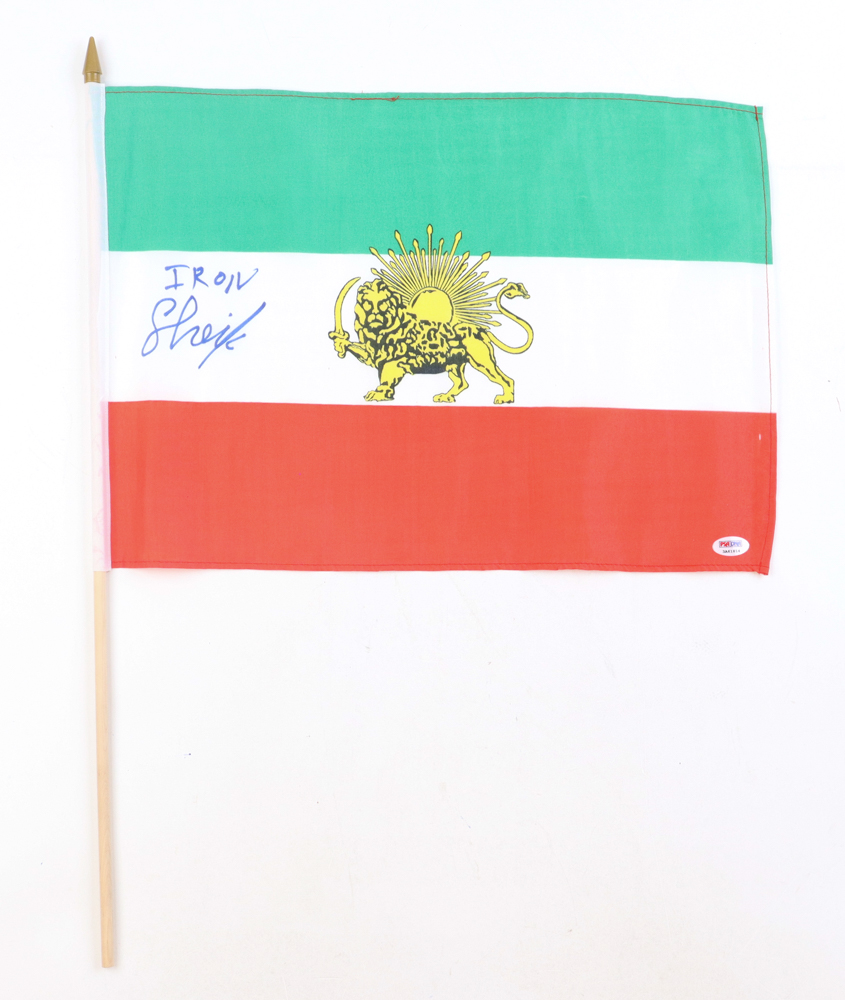 Iranian flag. Pole measures 24.5" long. Hand-signed by The Iron Sheik (D. 2023, HOF)