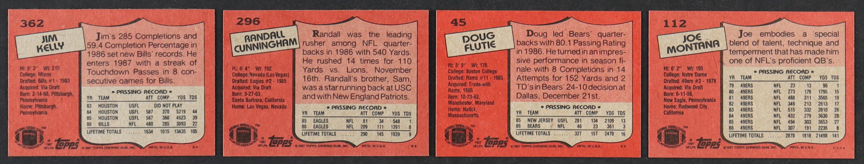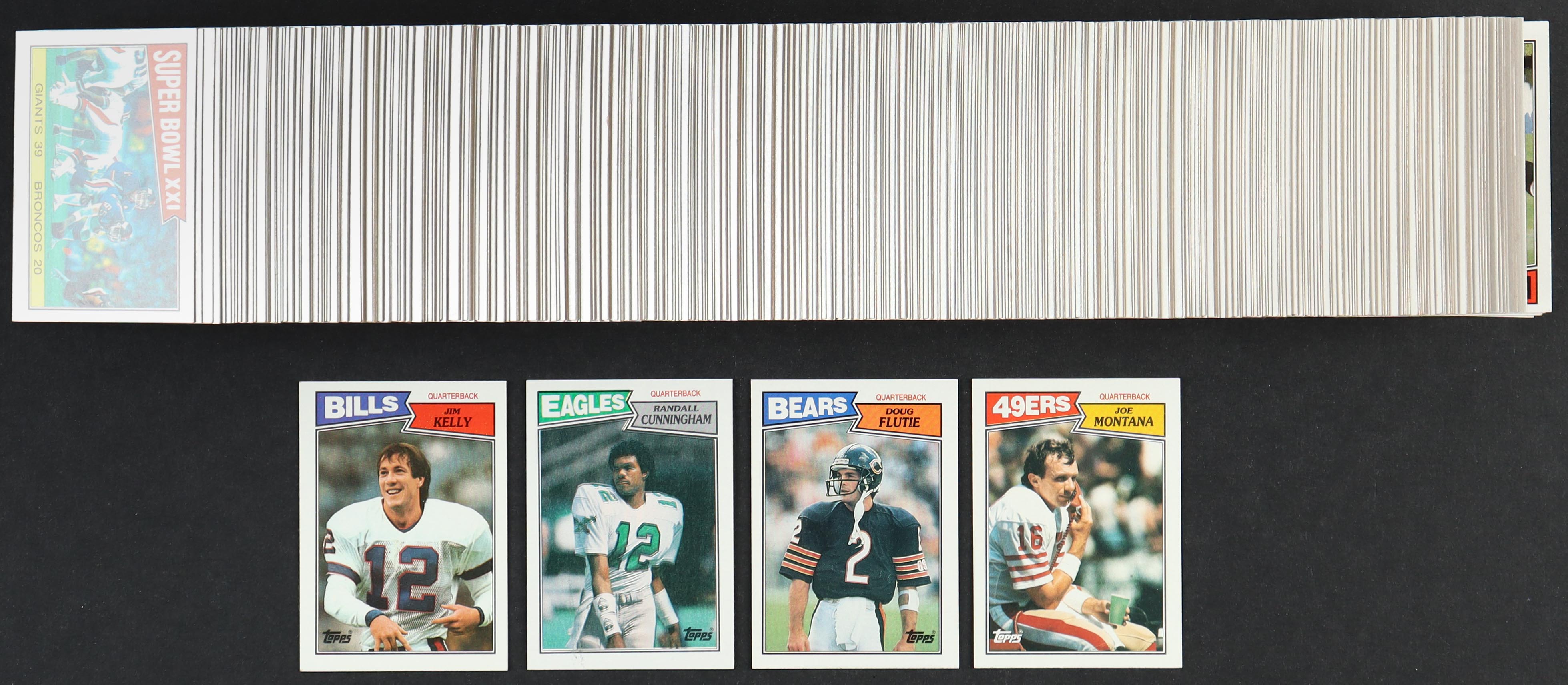 1987 Topps Complete Set of (396) Football Cards with Jim Kelly #362 RC, Randall Cunningham #296 RC, Doug Flutie #45 RC, Joe Montana #112