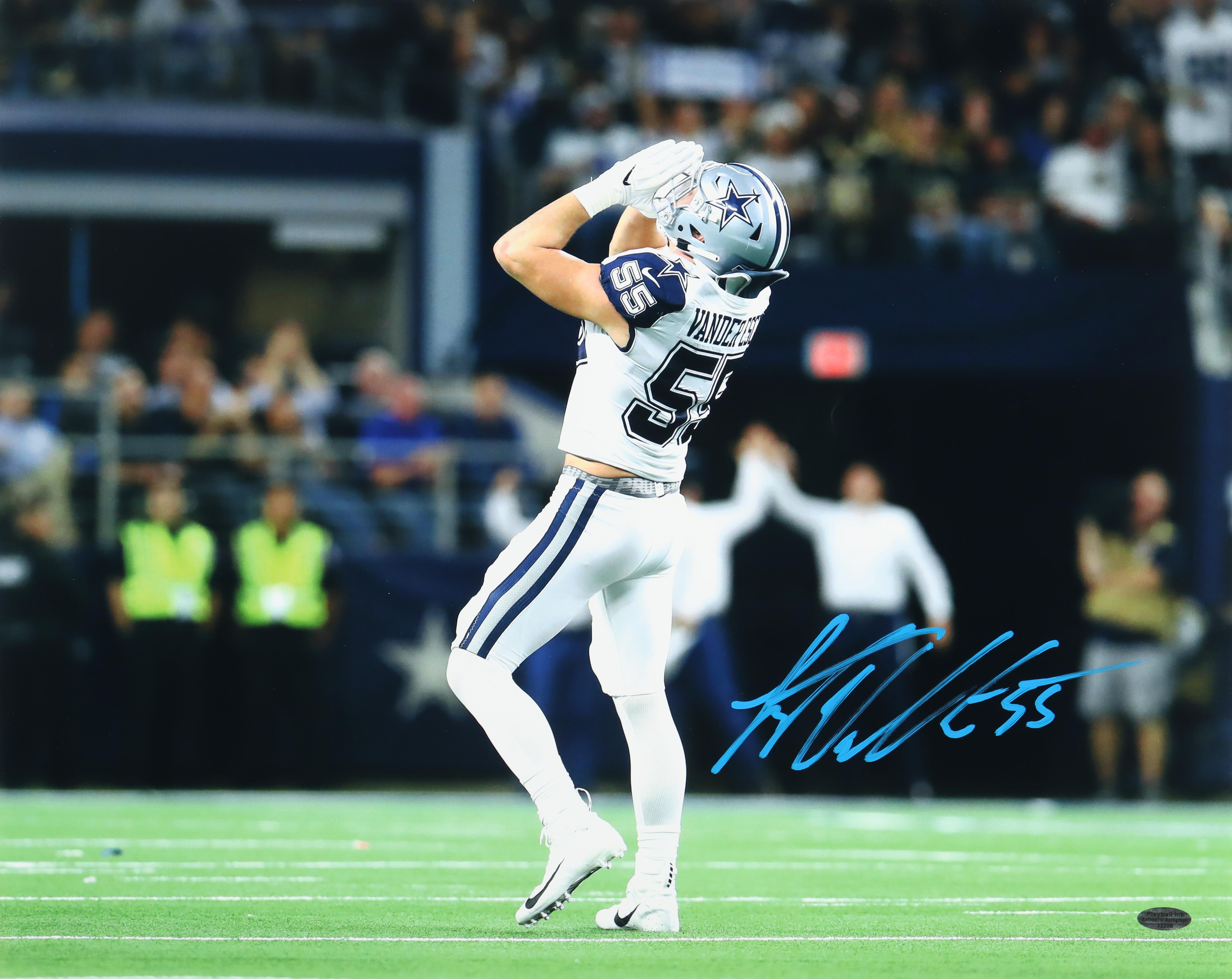 Photo measures 16" x 20" in size and has been hand-signed by Leighton Vander Esch (Dallas Cowboys).