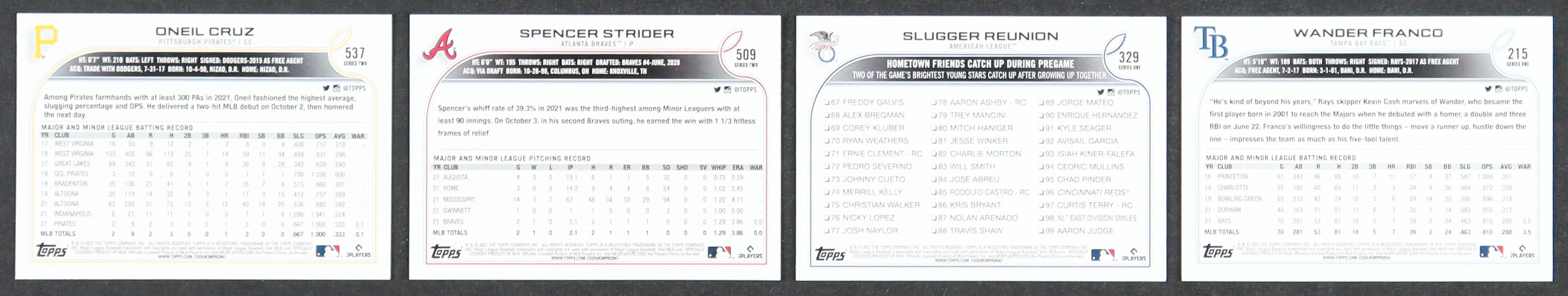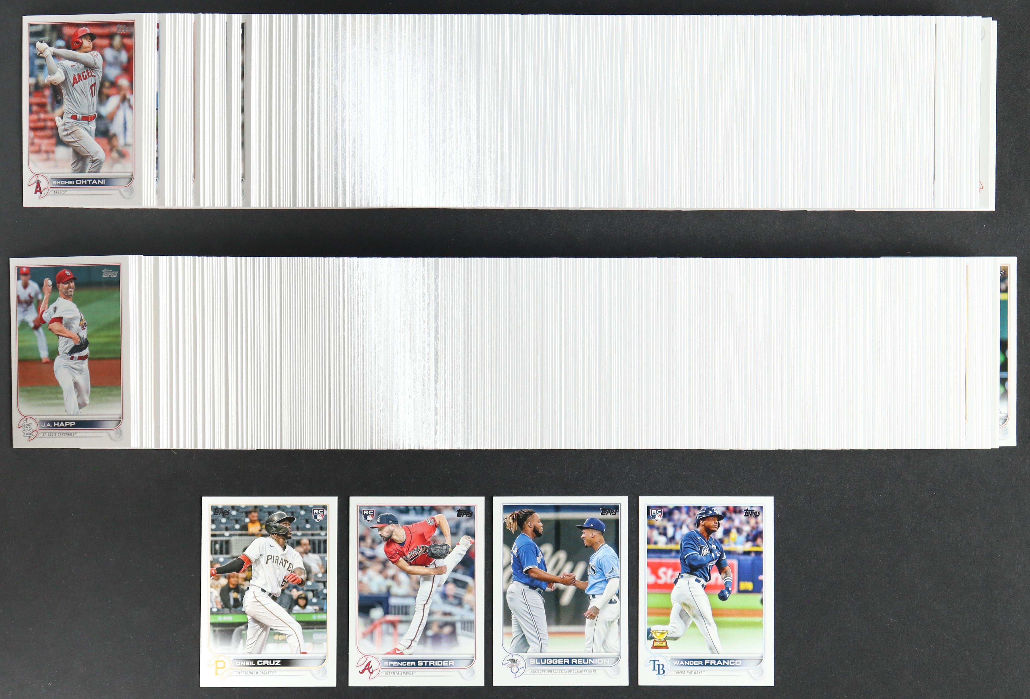 2022 Topps Complete Set of (660) Baseball Cards with Oneil Cruz #537 RC, Spencer Strider #509 RC, Slugger Reunion #329, Wander Franco #215 RC