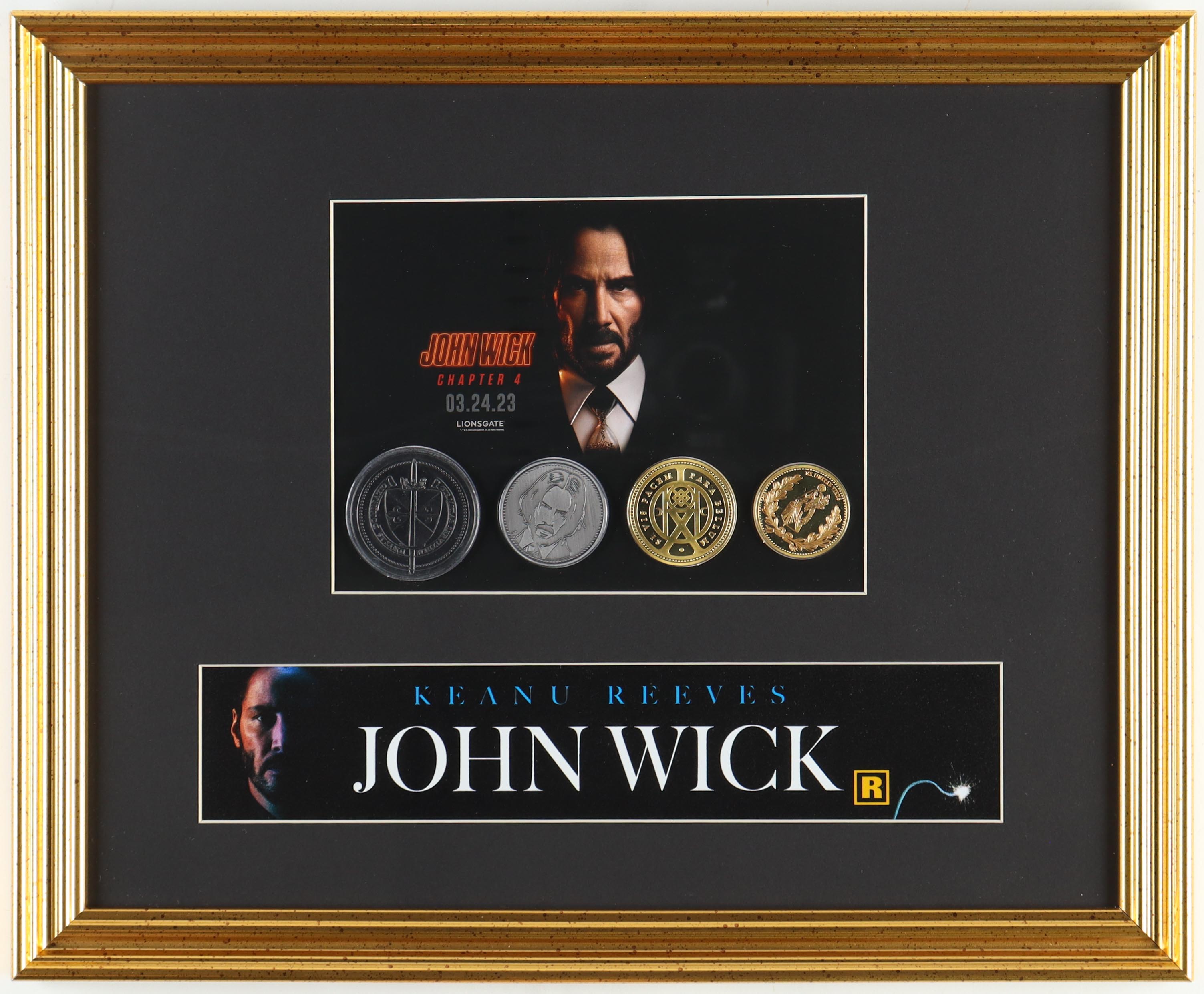"John Wick: Chapter 4" Custom Framed Movie Poster Display with (4) Opening Night Coins & Theater Used Mylar Sign