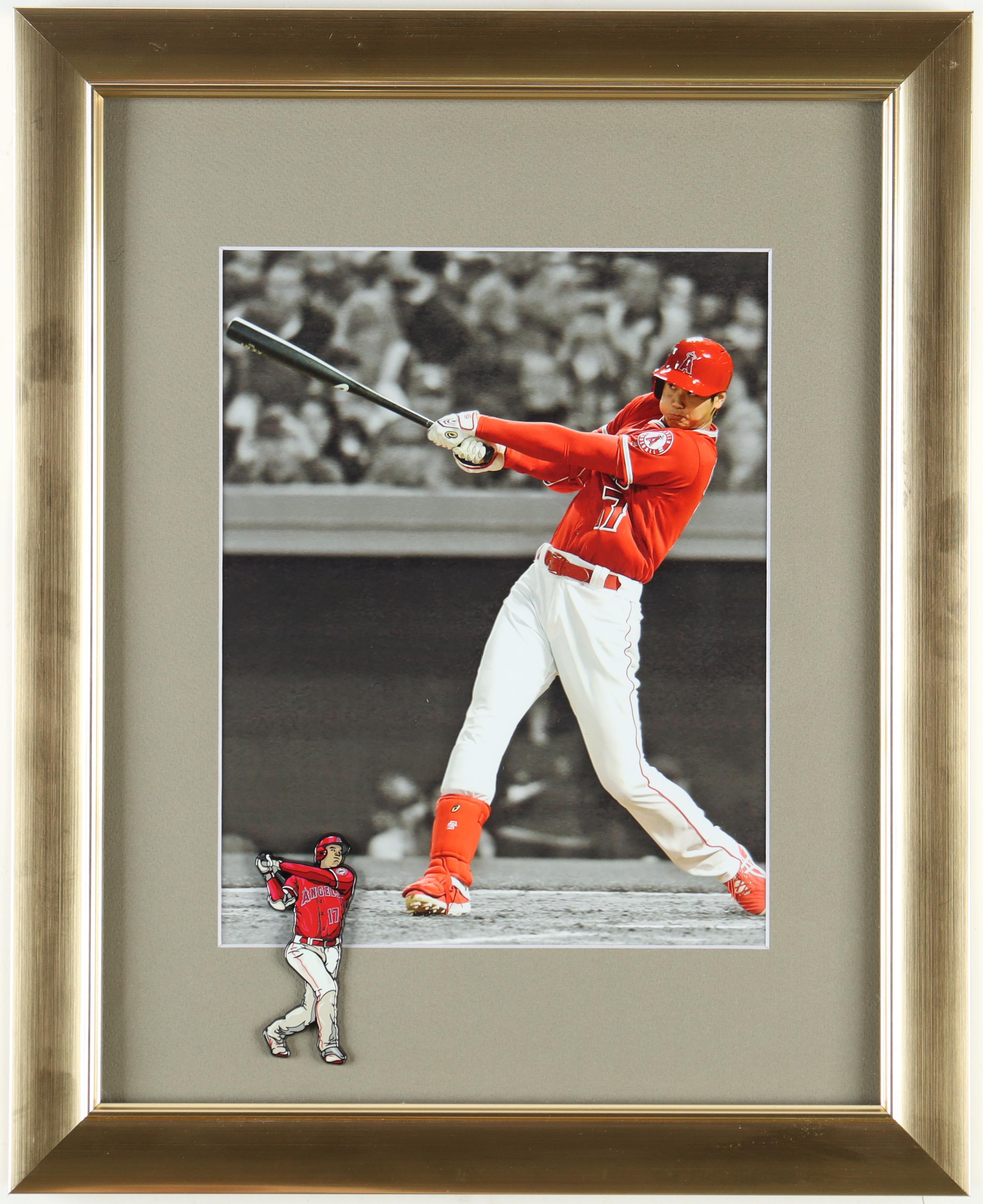 Custom frame measures 13" x 16" in size and features a photo of Shohei Ohtani (Los Angeles Angels) and a ceramic pin.