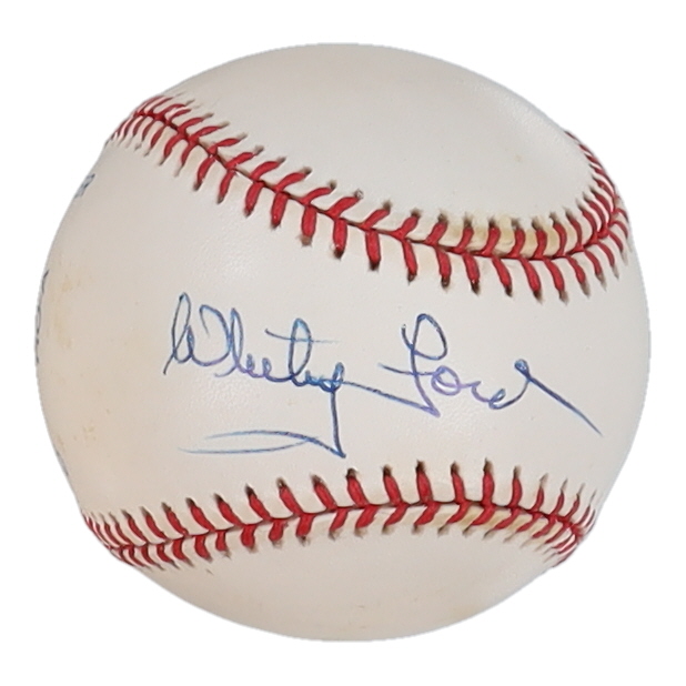 Rawlings Official American League Baseball. Hand-signed by Whitey Ford (D. 2020, New York Yankees, HOF). Please note, the baseball is naturally toned.