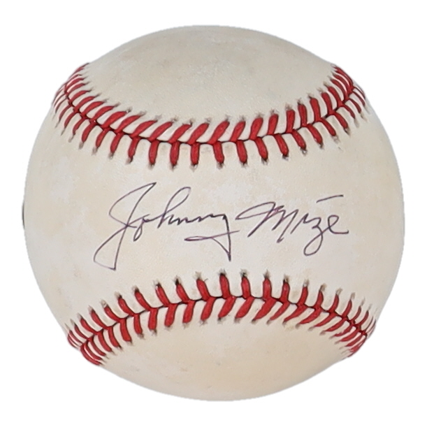 Rawlings Official National League baseball. Hand-signed by Johnny Mize (D. 1993, St. Louis Cardinals, HOF). Please note, the baseball is naturally toned.