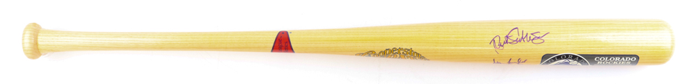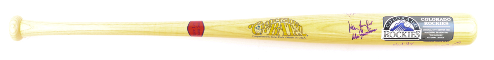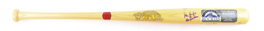 Colorado Rockies logo Cooperstown baseball bat has been hand-signed by (5) with Joe Girardi, Don Baylor, Bret Saberhagen, Don Zimmer, Charlie Hayes.