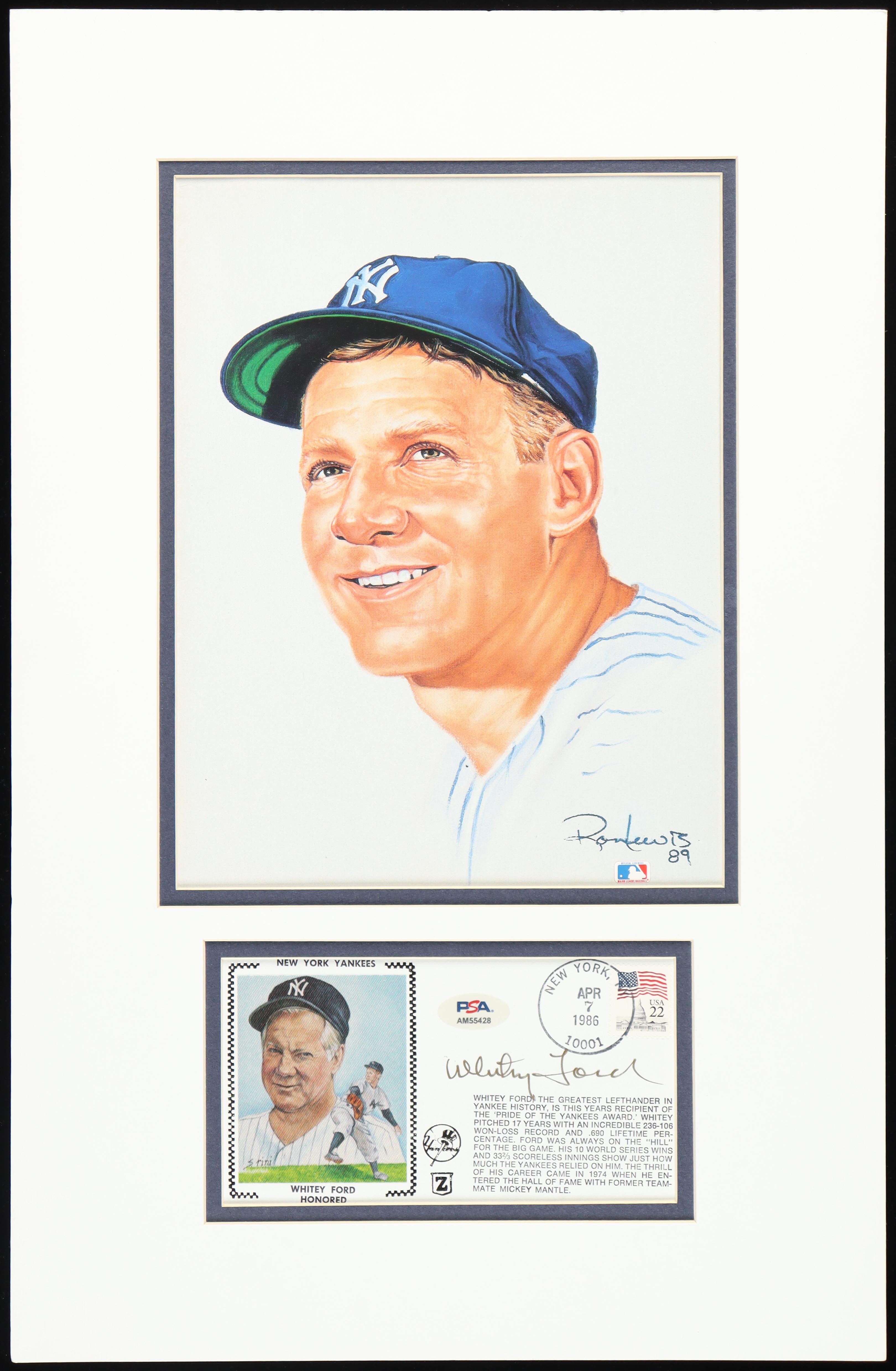 Whitey Ford Signed Yankees Custom Matted 1986 FDC Envelope Display (PSA)