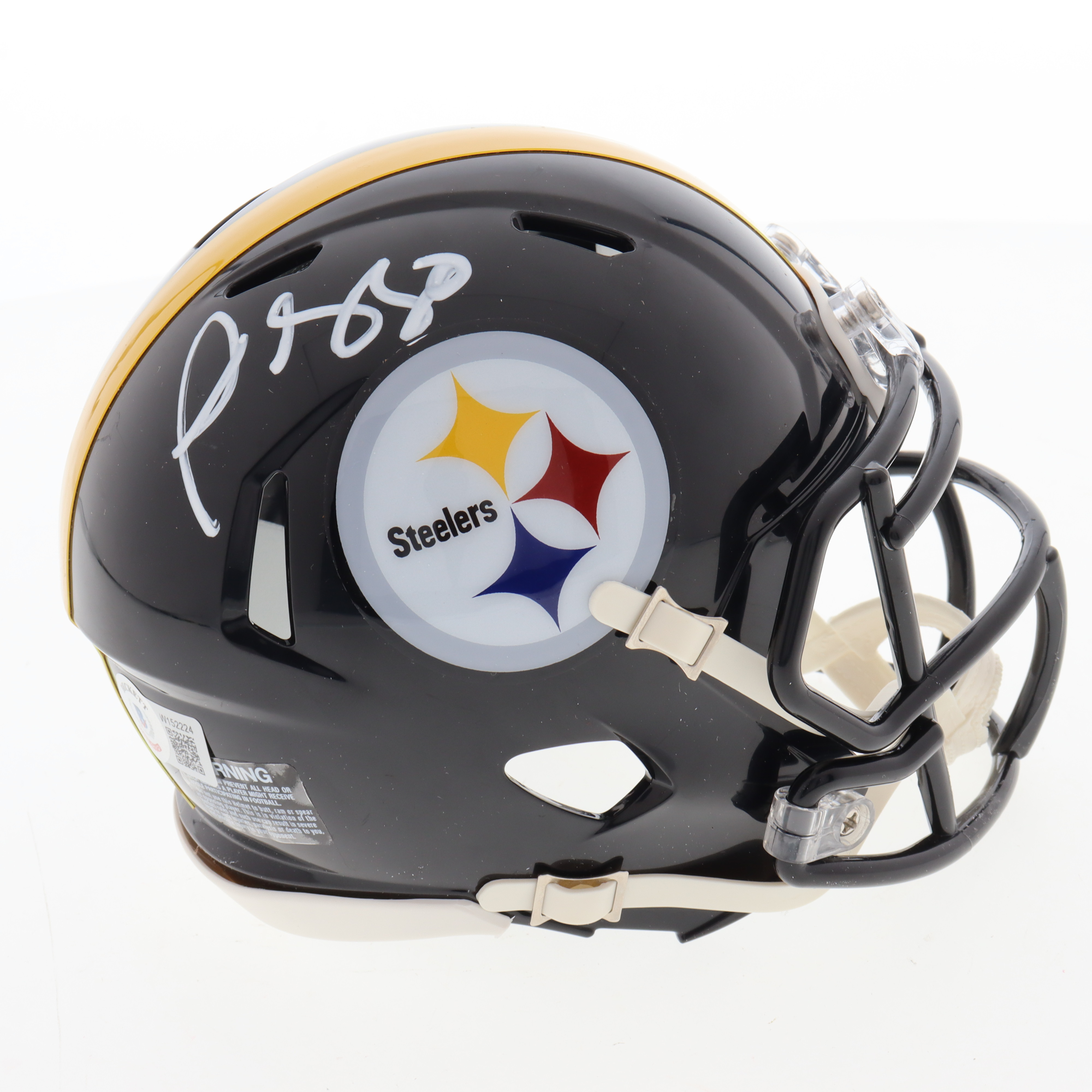 Riddell Pittsburgh Steelers Speed mini helmet. Hand-signed by Plaxico Burress.