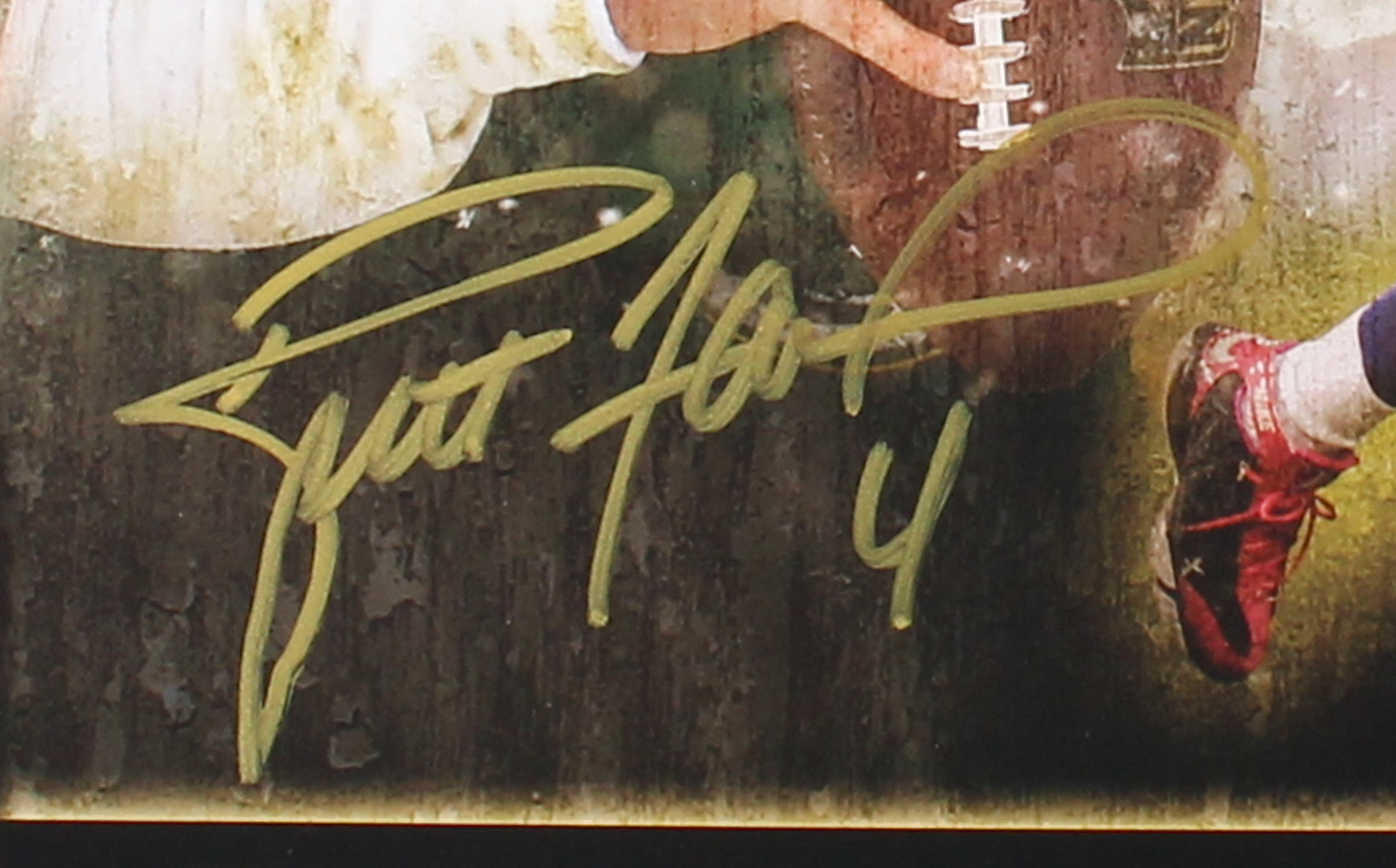 Photo measures 18" x 24" in size and has been hand-signed in gold paint pen by Brett Favre (Packers, HOF).