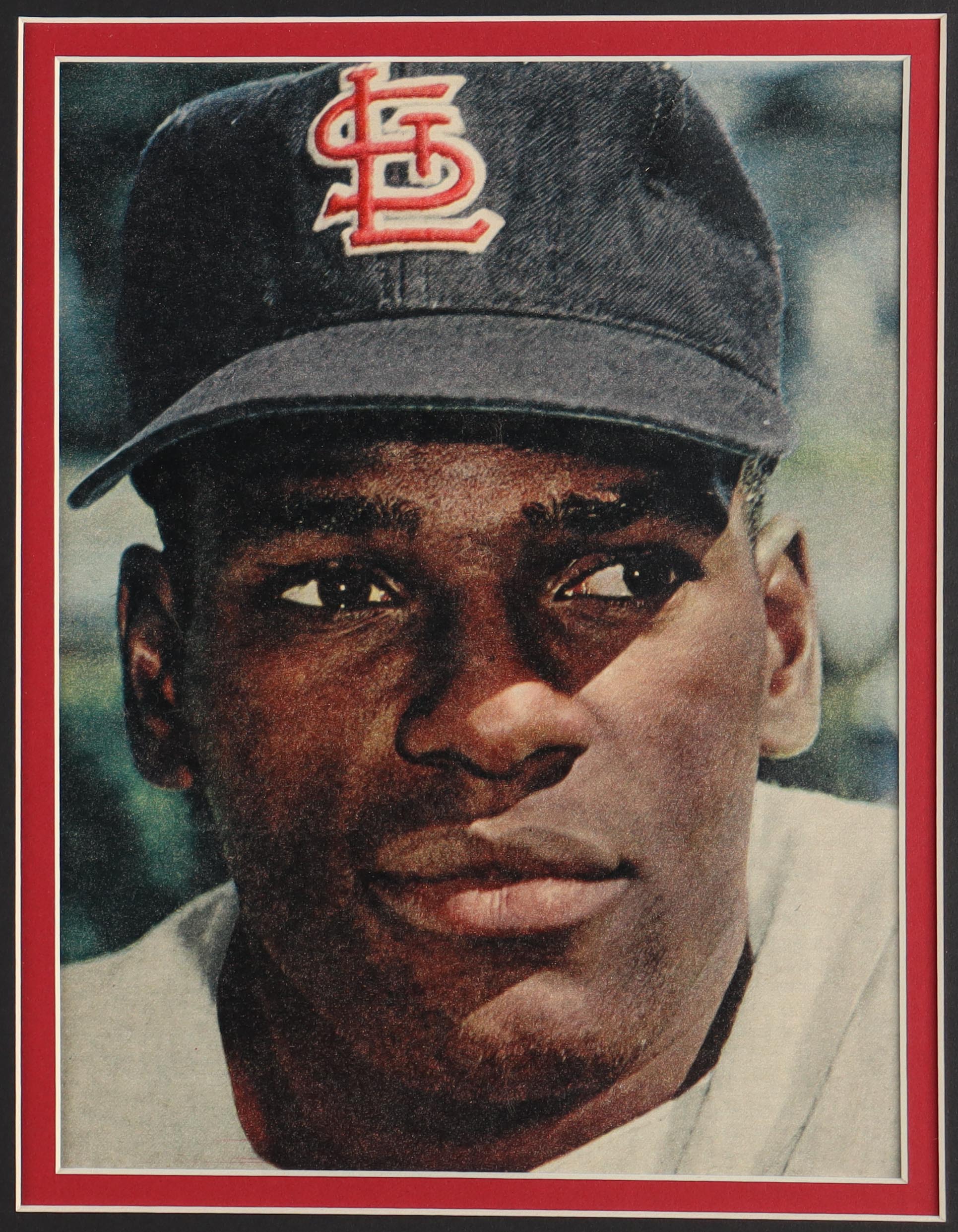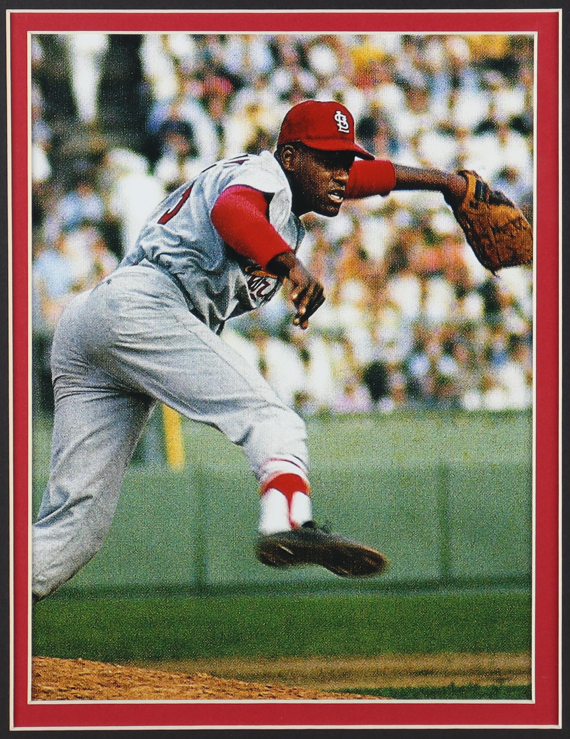 Custom frame measures 32" x 36" in size and features a Bob Gibson jersey as well as a cut that has been hand signed by Bob Gibson (D. 2020, HOF).