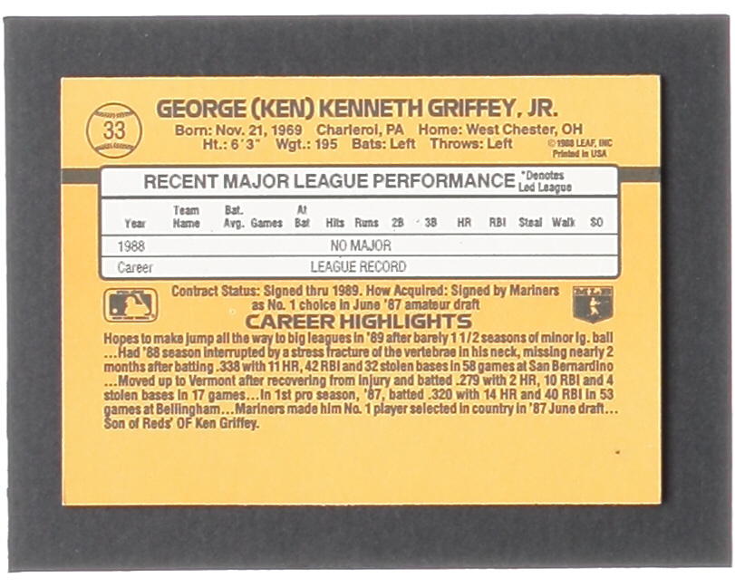 Ken Griffey Jr. 1989 Donruss #33 RR RC