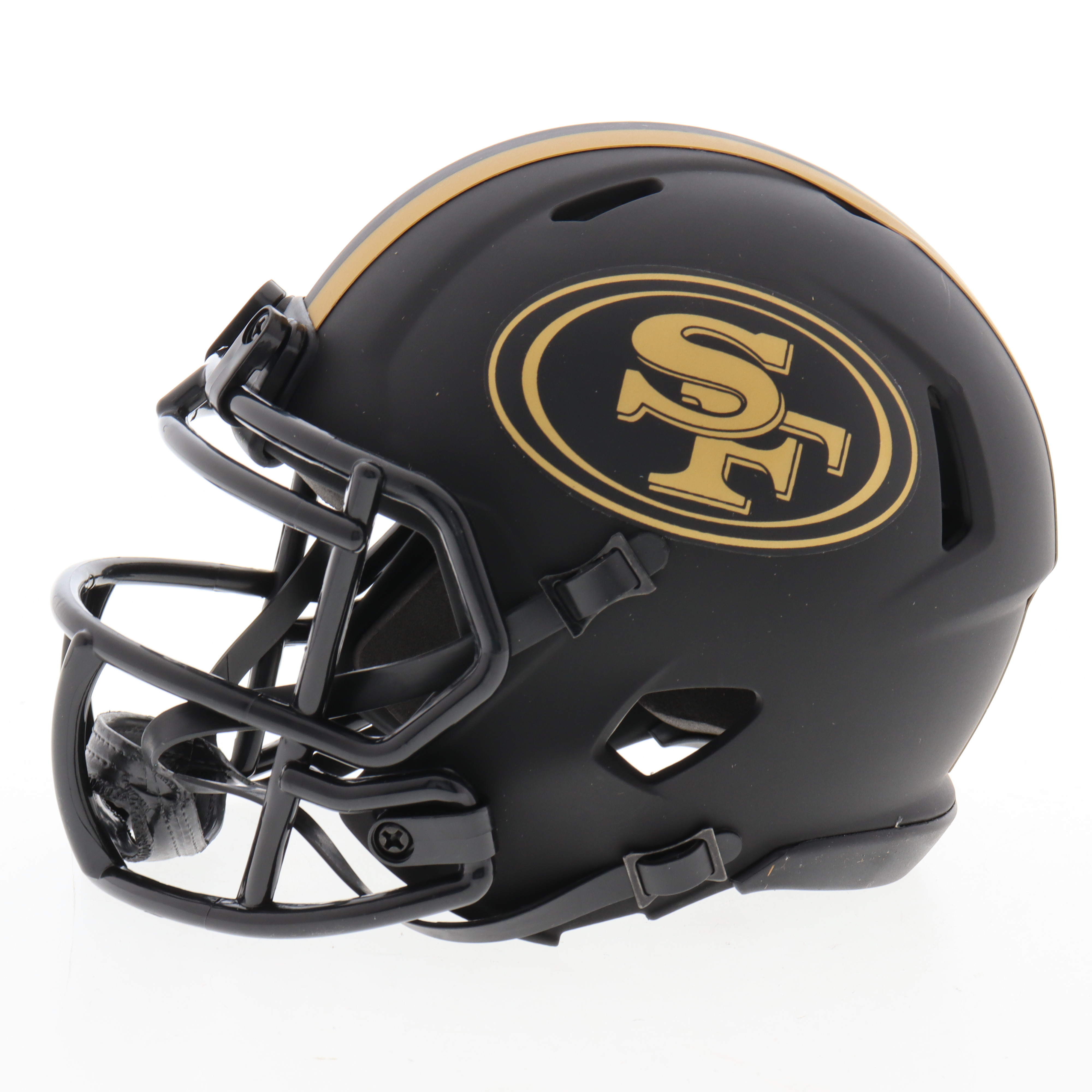 Riddell San Francisco 49ers eclipse alternate speed mini helmet. Hand-signed by Javon Kinlaw.