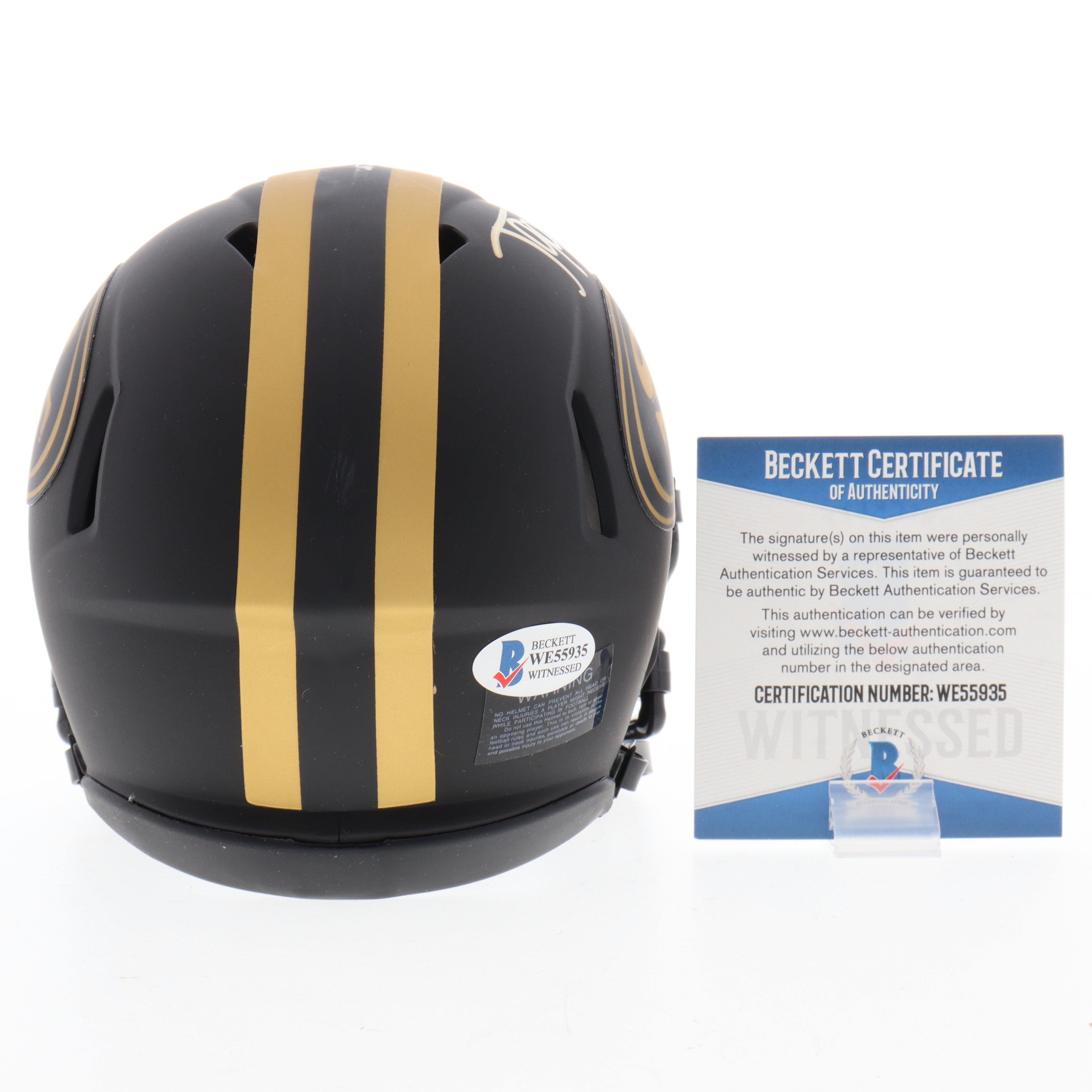 The autograph includes an official Beckett Authentication Services serially-numbered hologram and matching COA for authenticity purposes. The signing of this item was witnessed by Beckett.