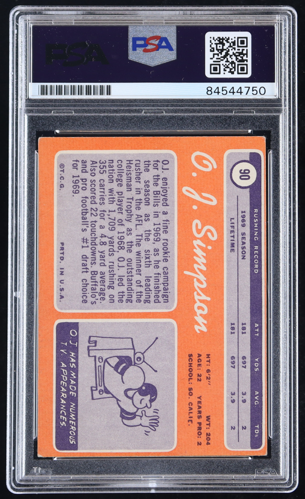 O. J. Simpson Signed 1970 Topps #90 RC (PSA | Autograph Graded PSA 9)