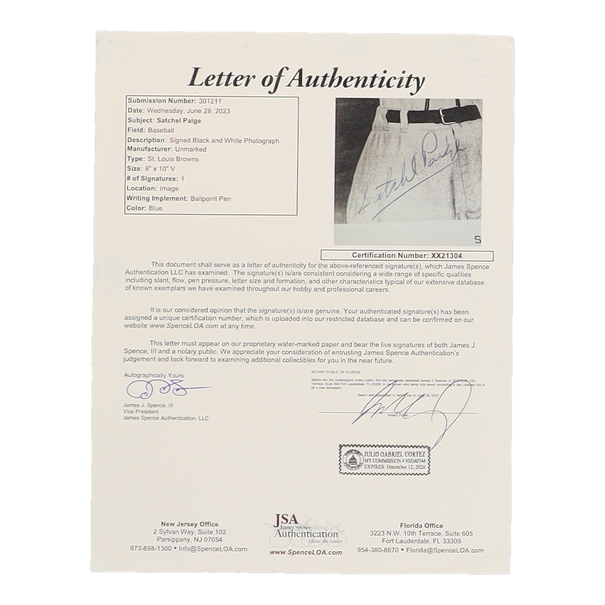 Satchel Paige Signed Browns 8x10 Photo (JSA)