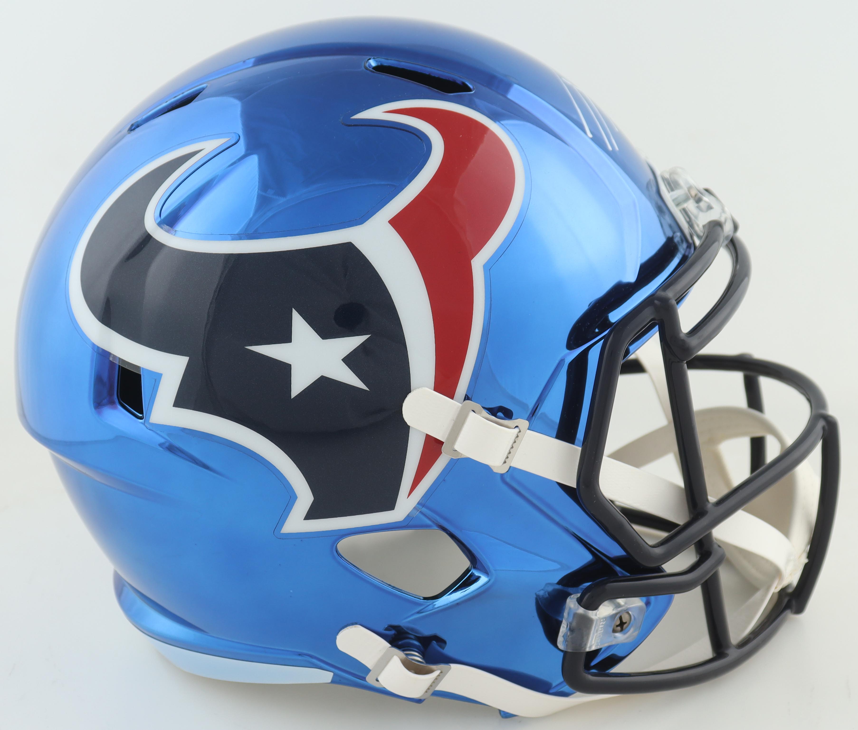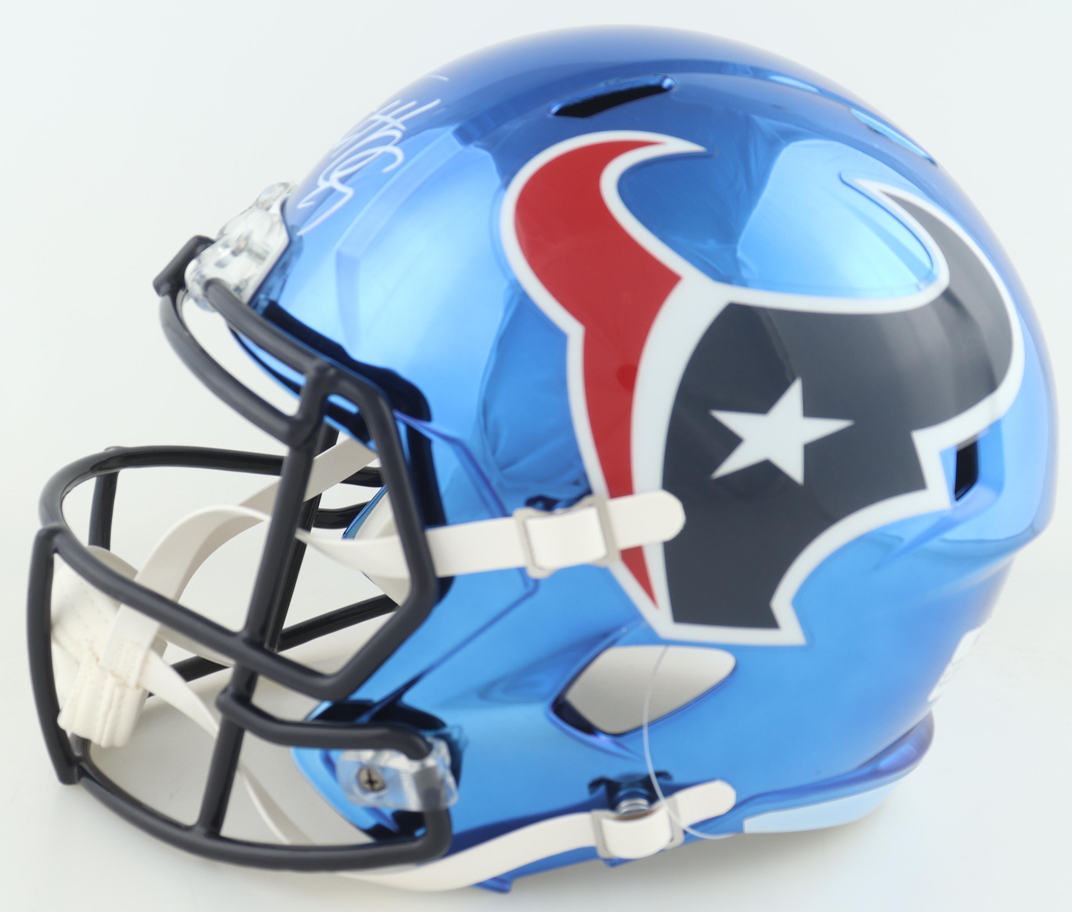 Riddell Houston Texans full-size replica chrome speed helmet. Hand-signed by J.J. Watt.