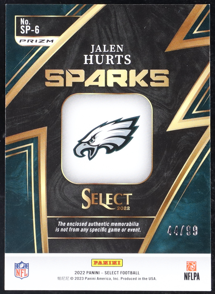 Jalen Hurts 2022 Select Sparks Materials Prizm #6 #44/99
