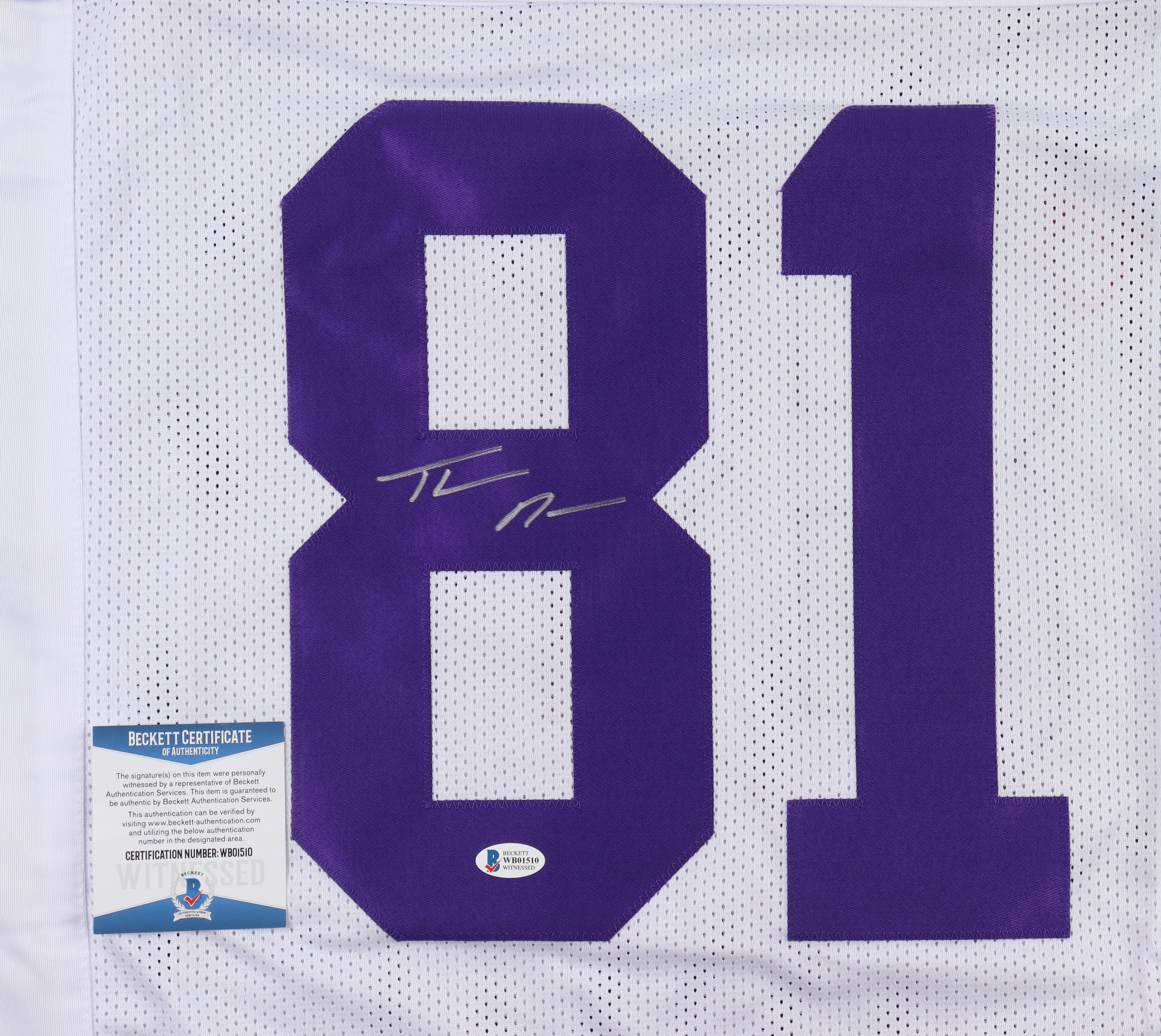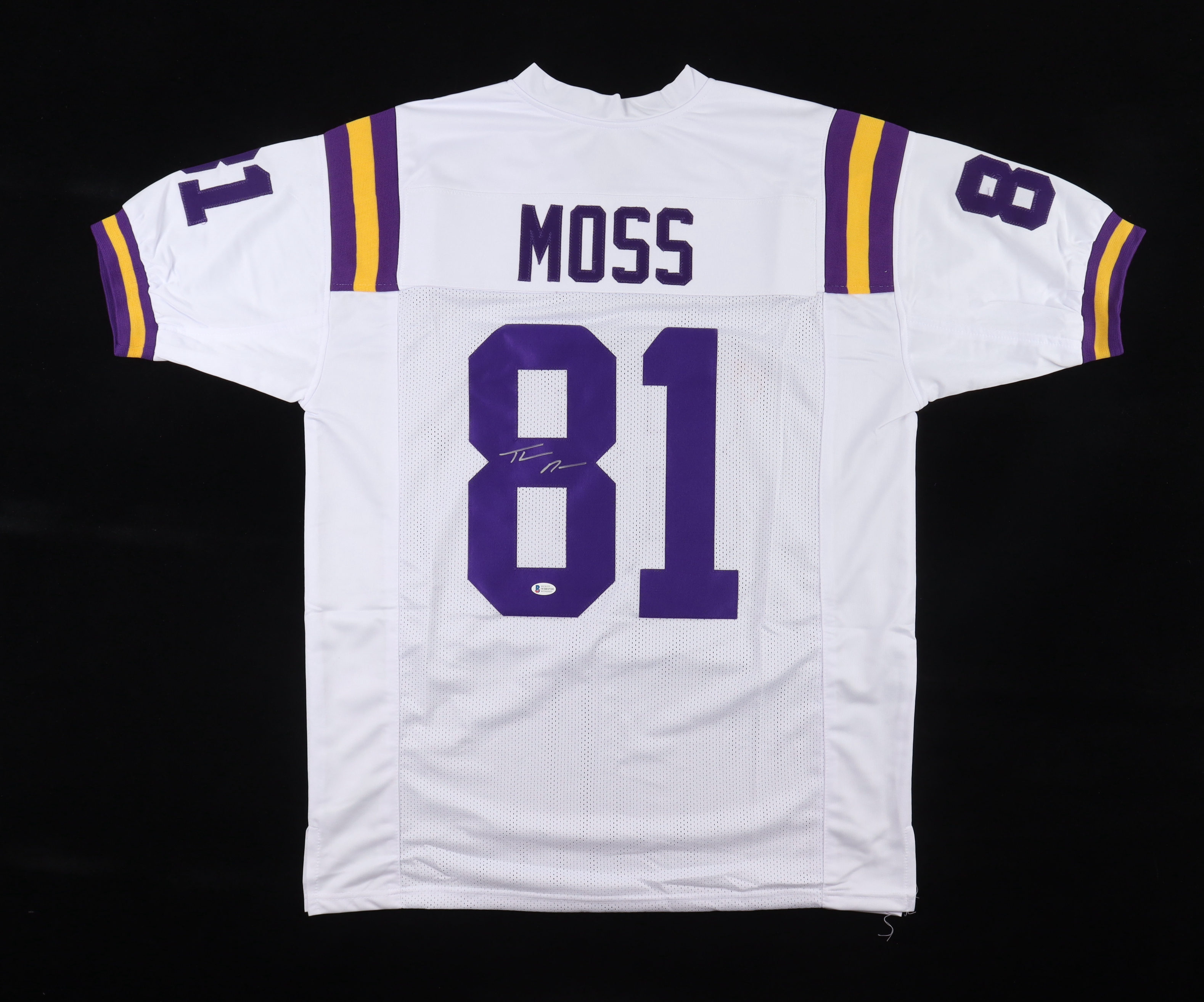 Custom jersey. Everything is sewn on, size XL. Hand-signed by Thaddeus Moss.