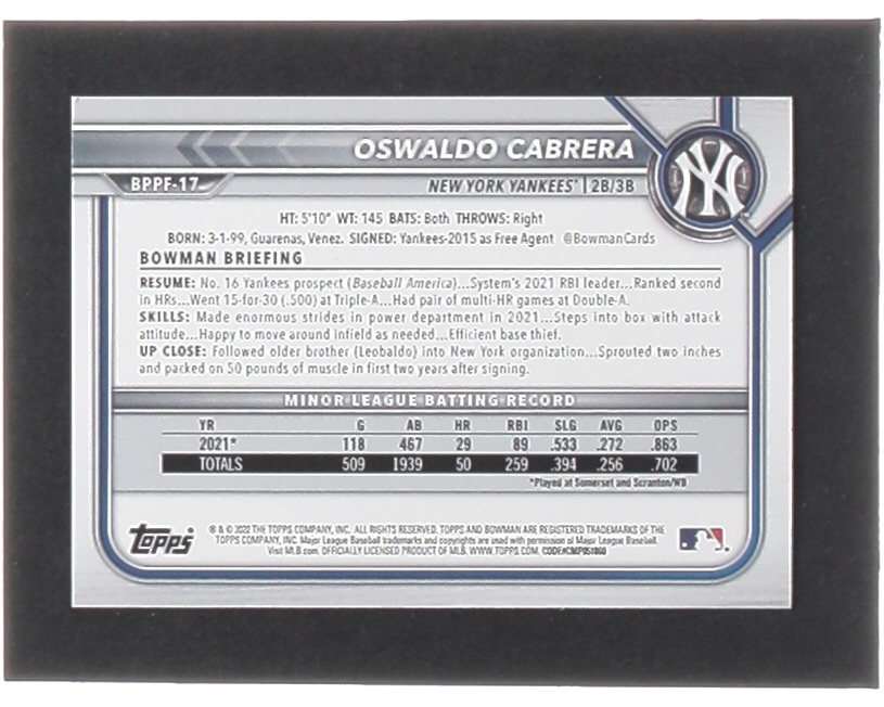 Oswaldo Cabrera 2022 Bowman 1st Edition #BPPF17