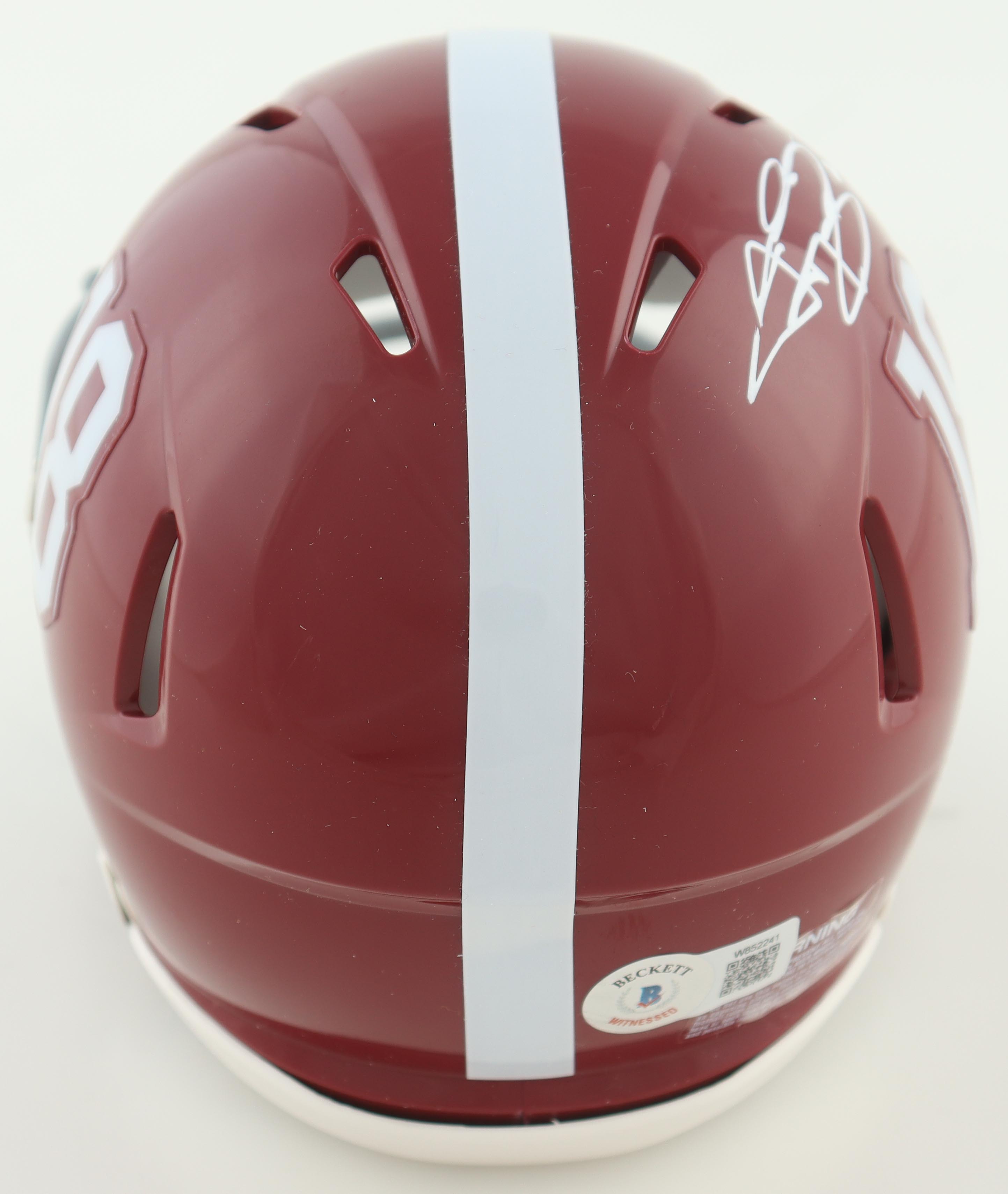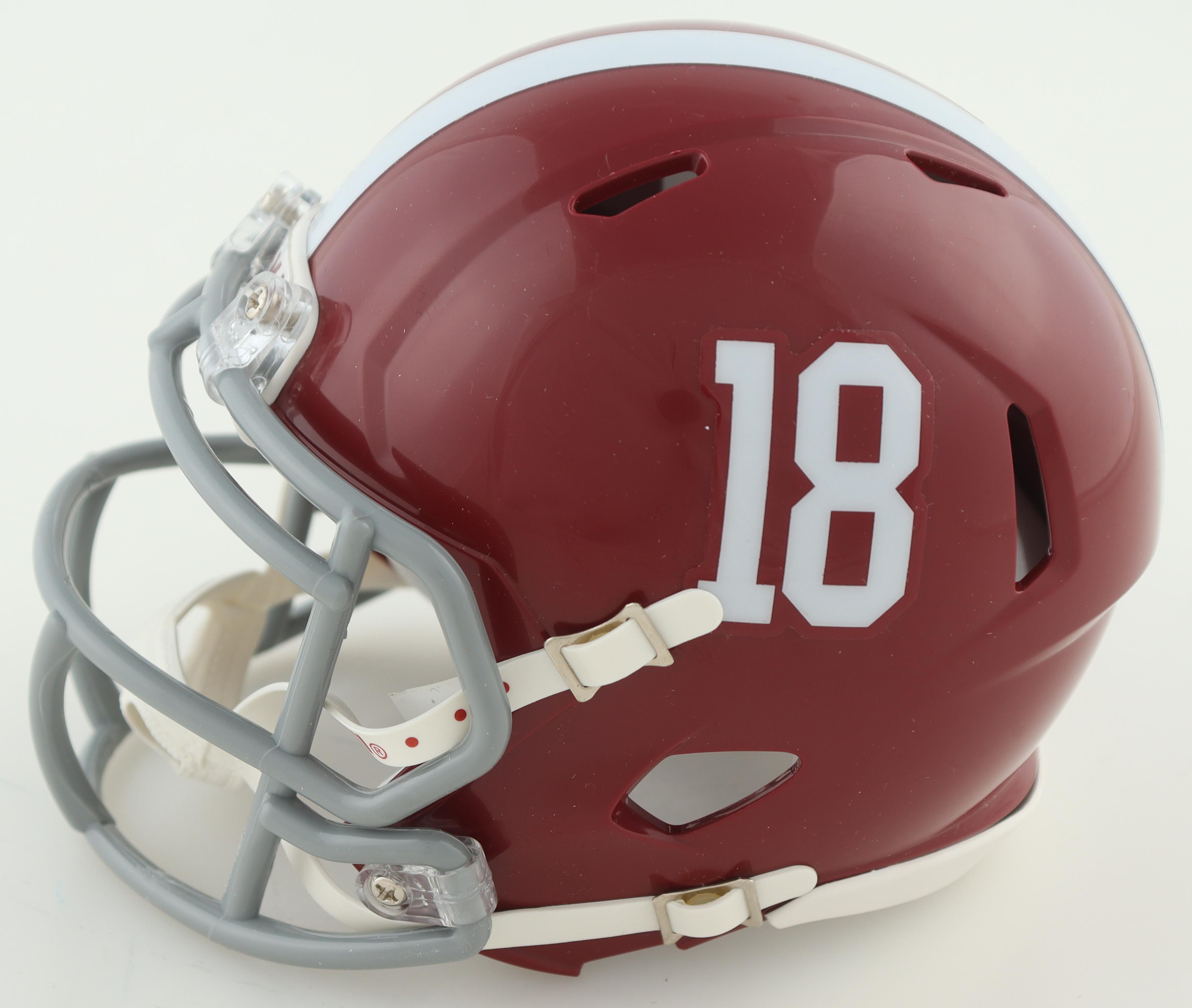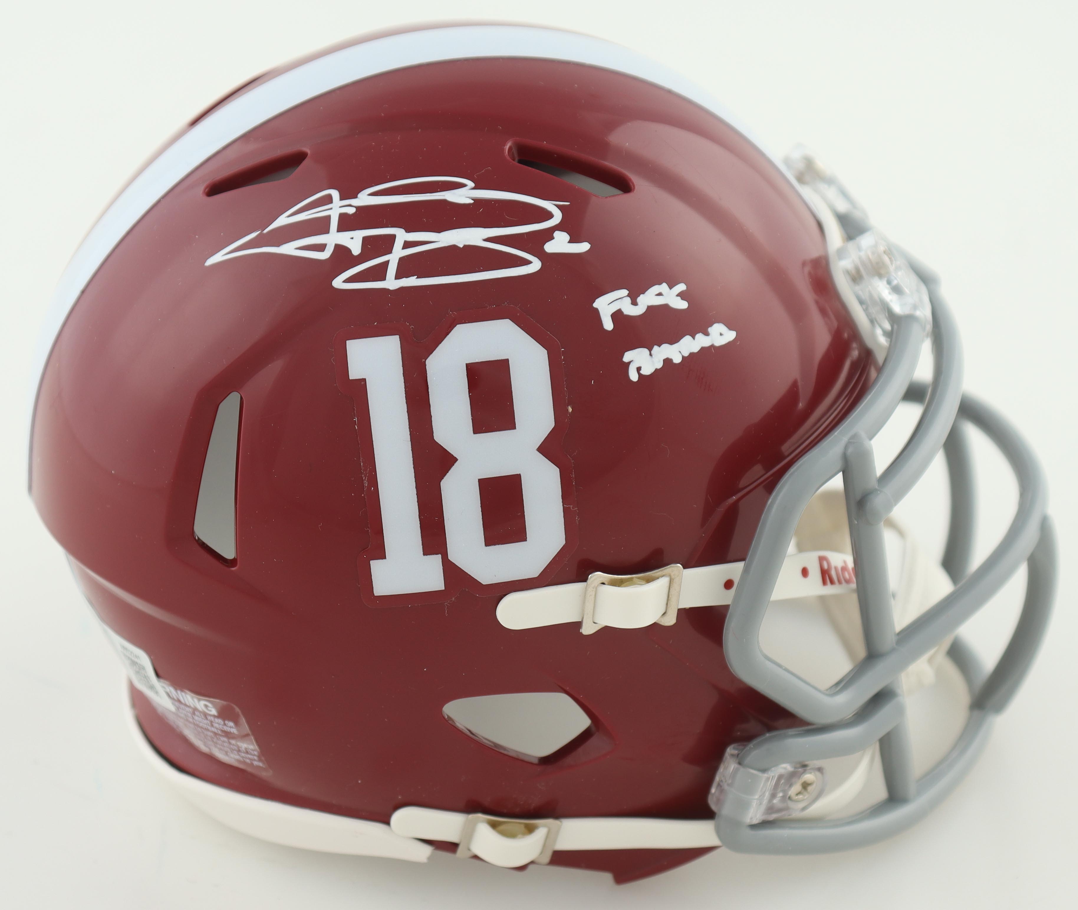 Riddell Alabama Crimson Tide Speed mini helmet. Hand-signed and inscribed by Johnny Manziel.