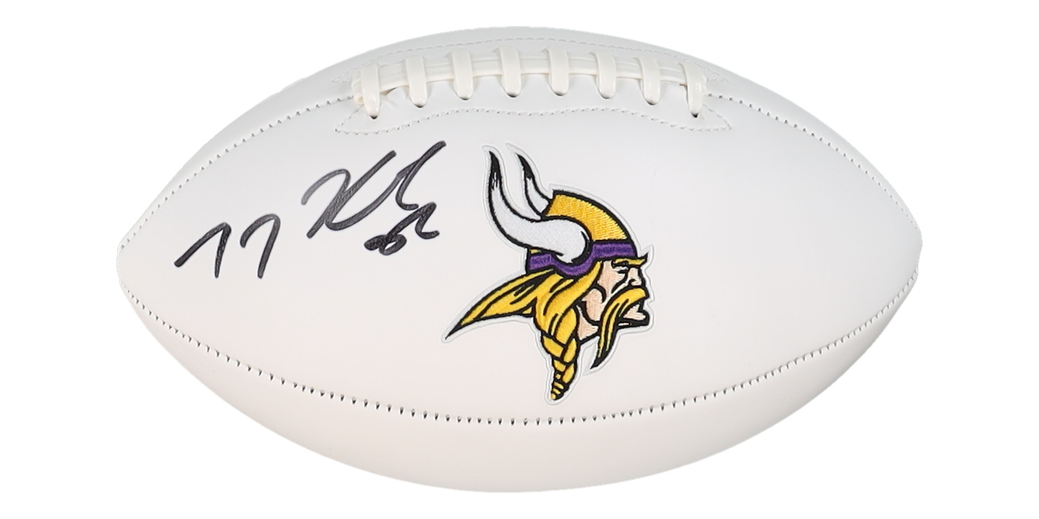 Minnesota Vikings Logo Football has been hand-signed by TJ Hockenson.