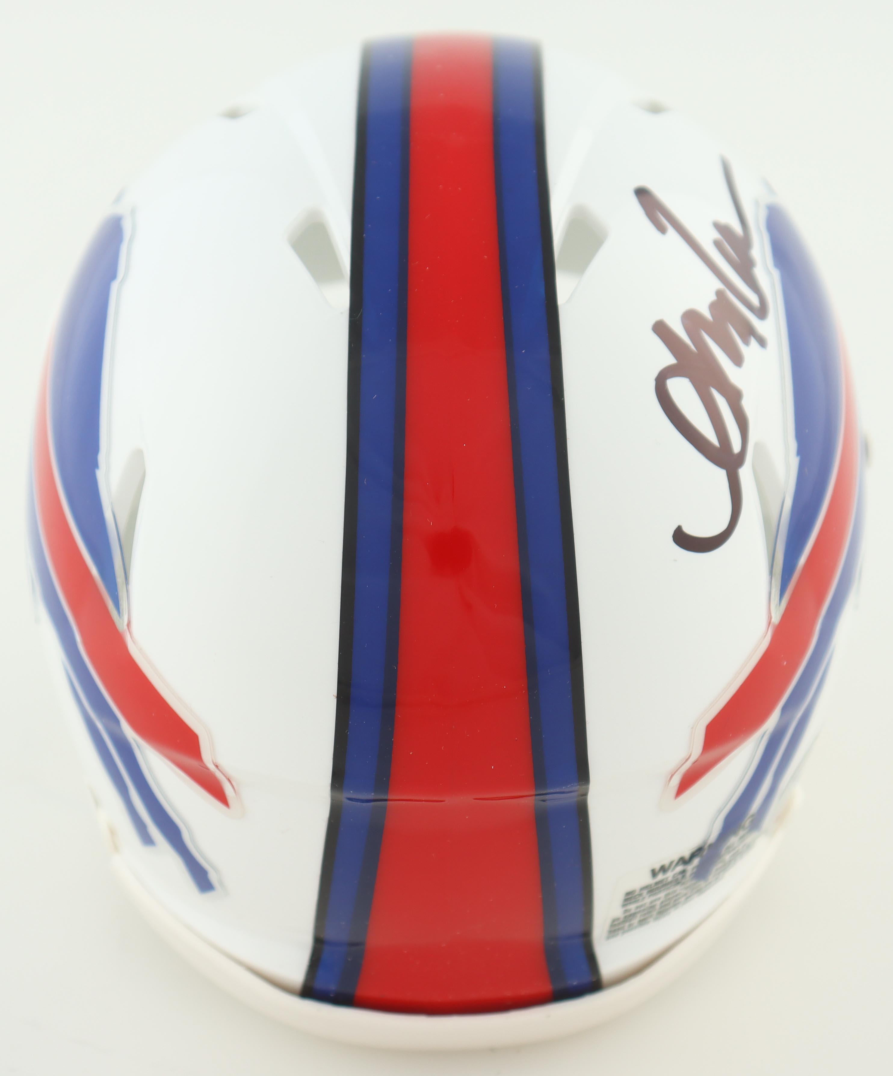 Riddell Buffalo Bills speed mini helmet. Has been hand-signed by Andre Reed (HOF).