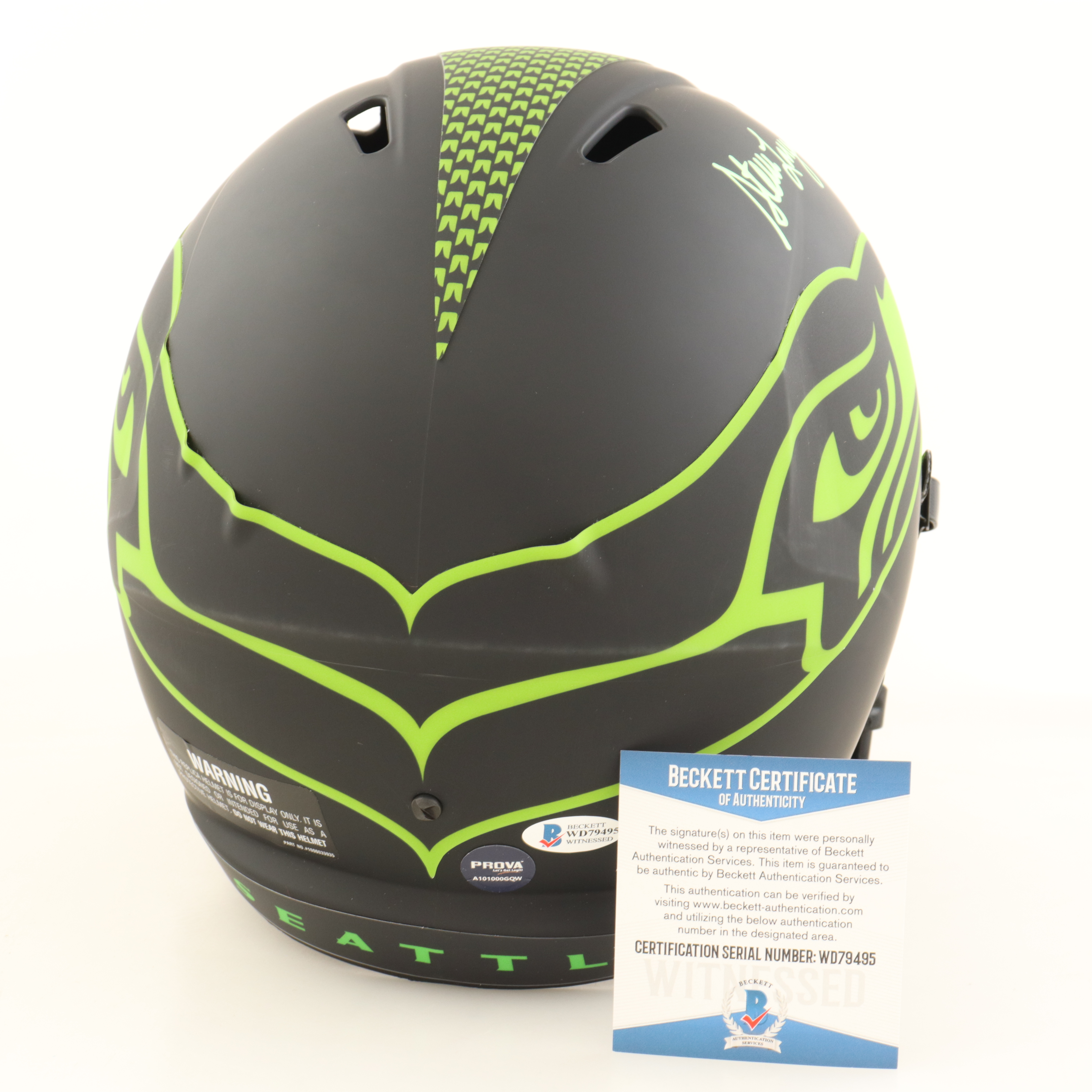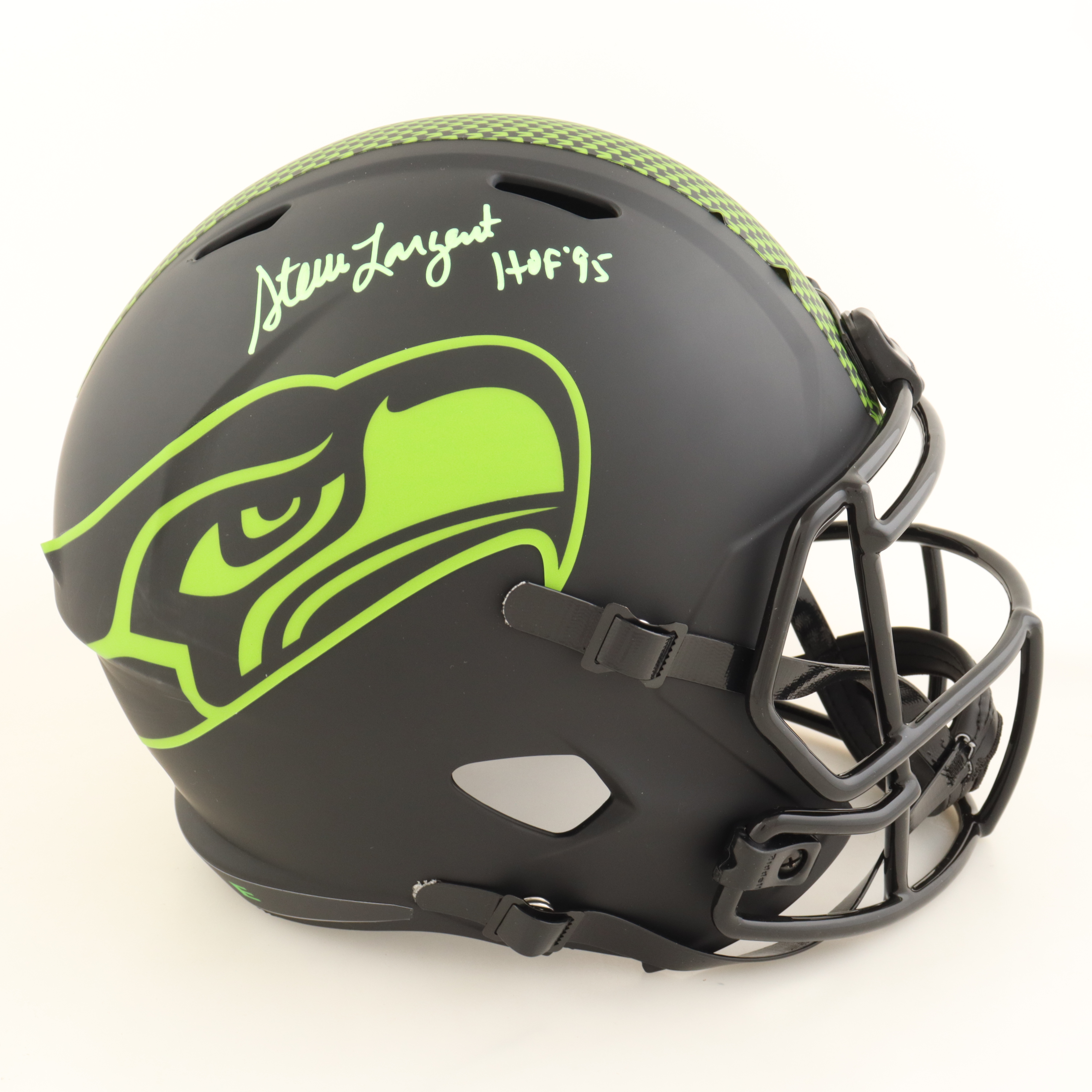 Riddell Seattle Seahawks full-size replica eclipse alternate speed helmet. Hand-signed and inscribed by Steve Largent (HOF).