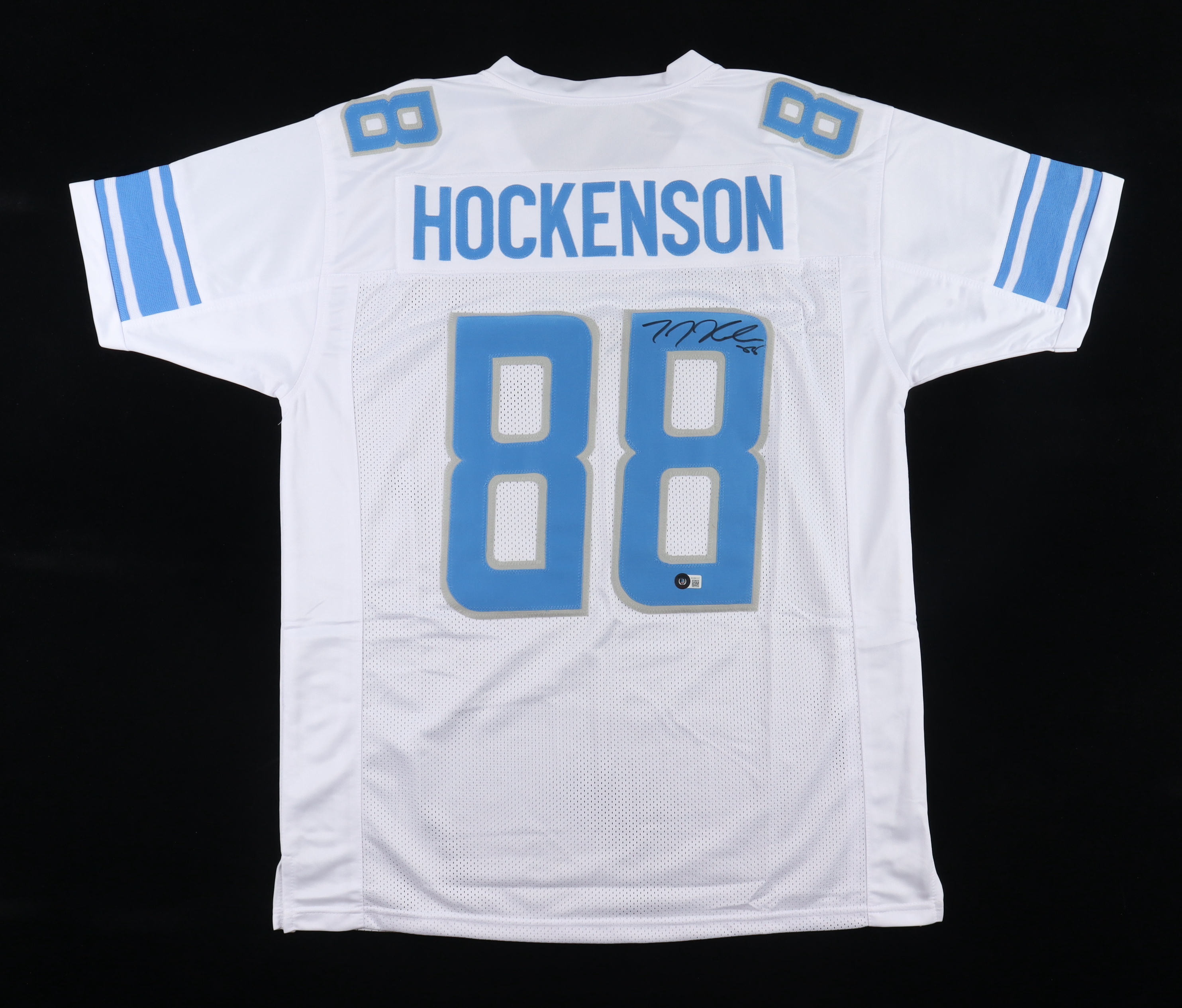Custom jersey with everything sewn on, size XL. Hand-signed by T. J. Hockenson.