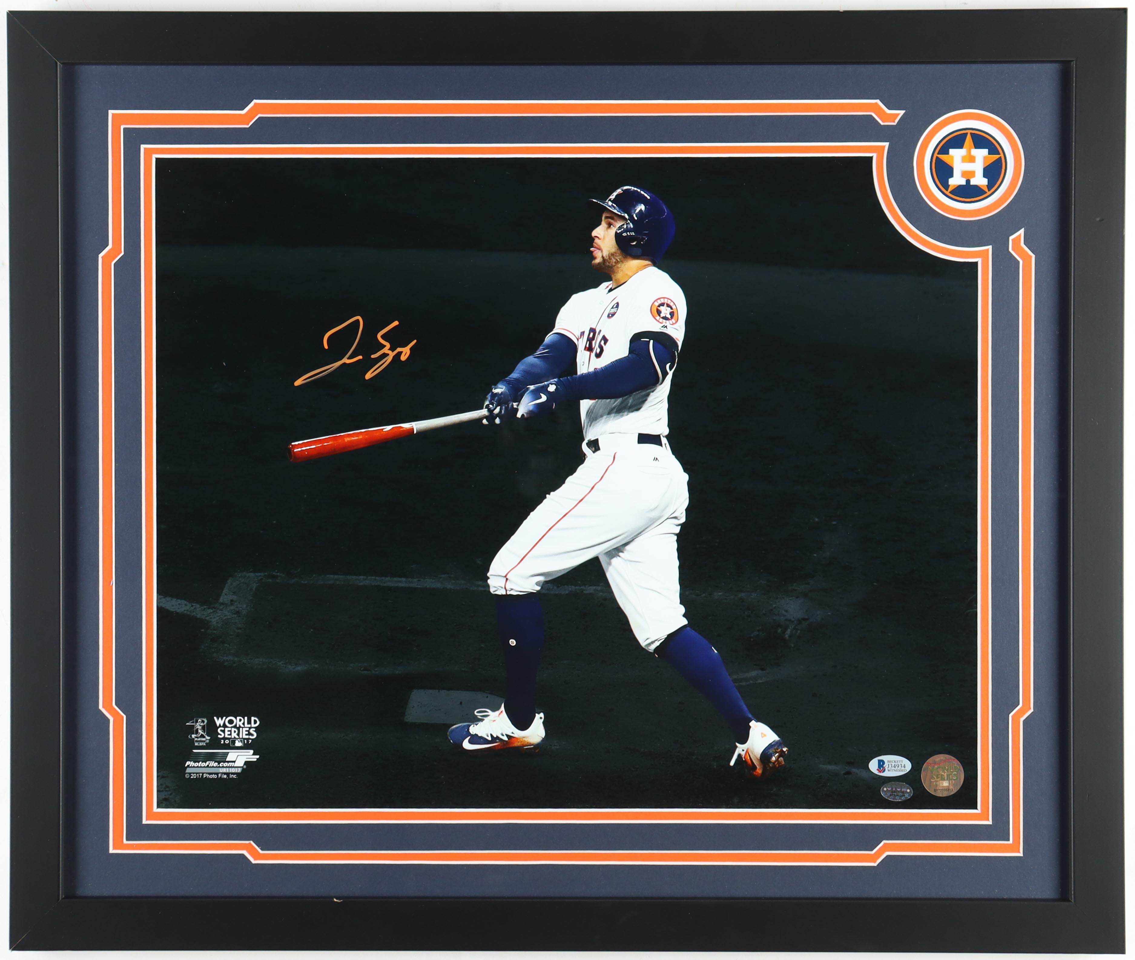 Custom frame measures 22" x 26" in size and features a photo that has been hand-signed by George Springer (Houston Astros).