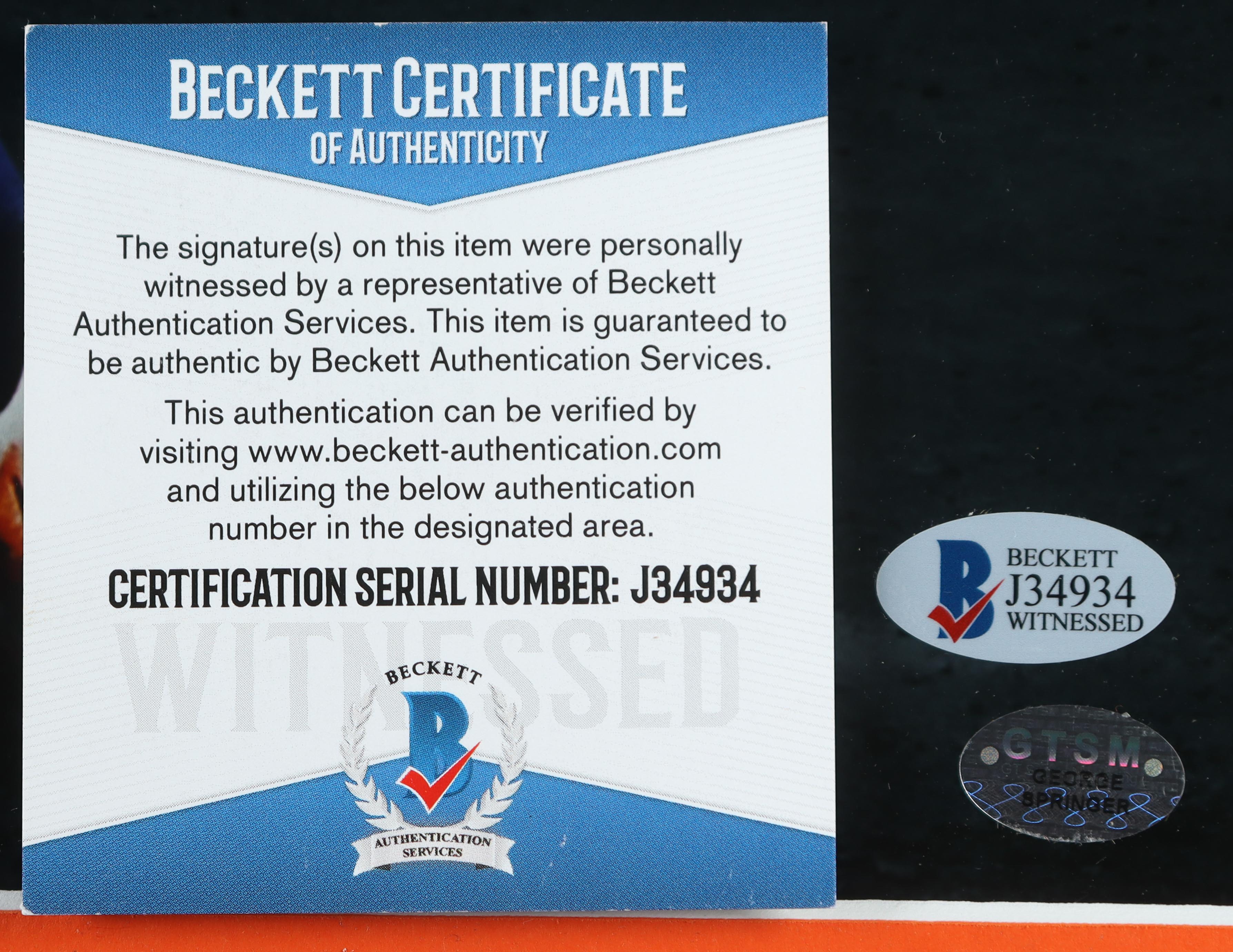 The autograph includes an official Beckett Authentication Services serially-numbered hologram and matching COA for authenticity purposes. The signing of this item was witnessed by Beckett.