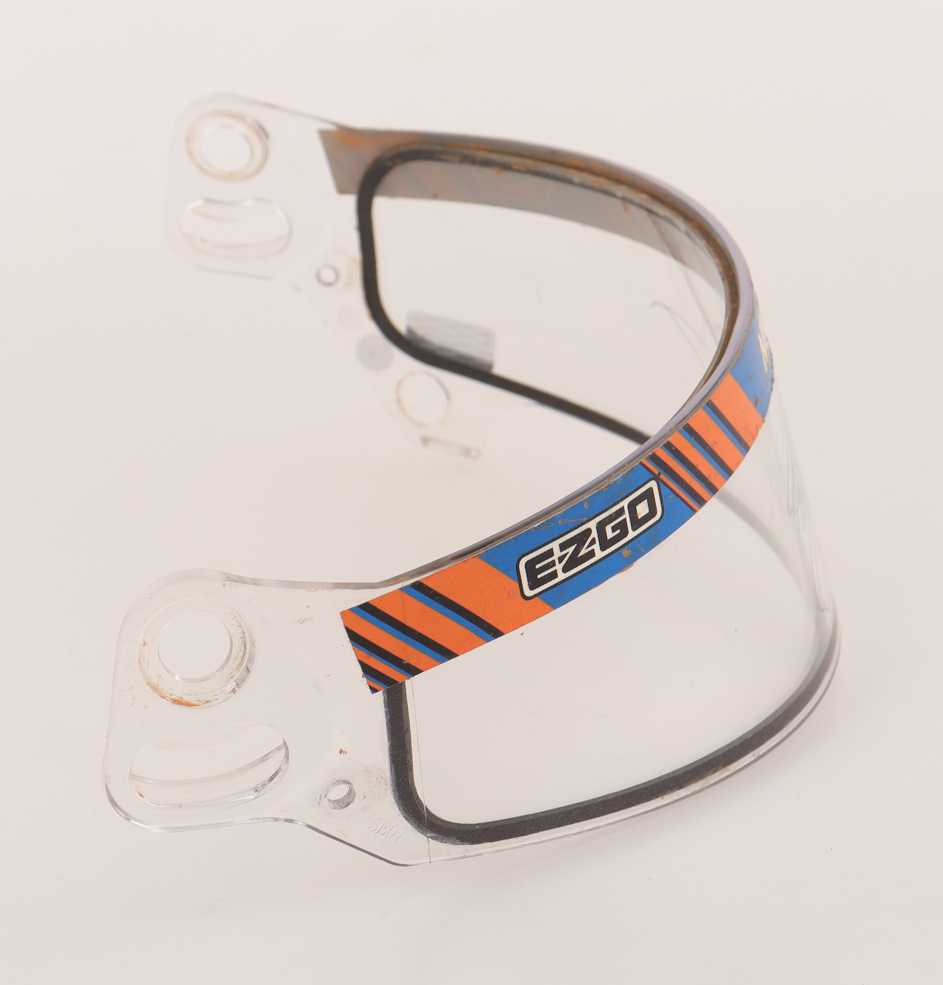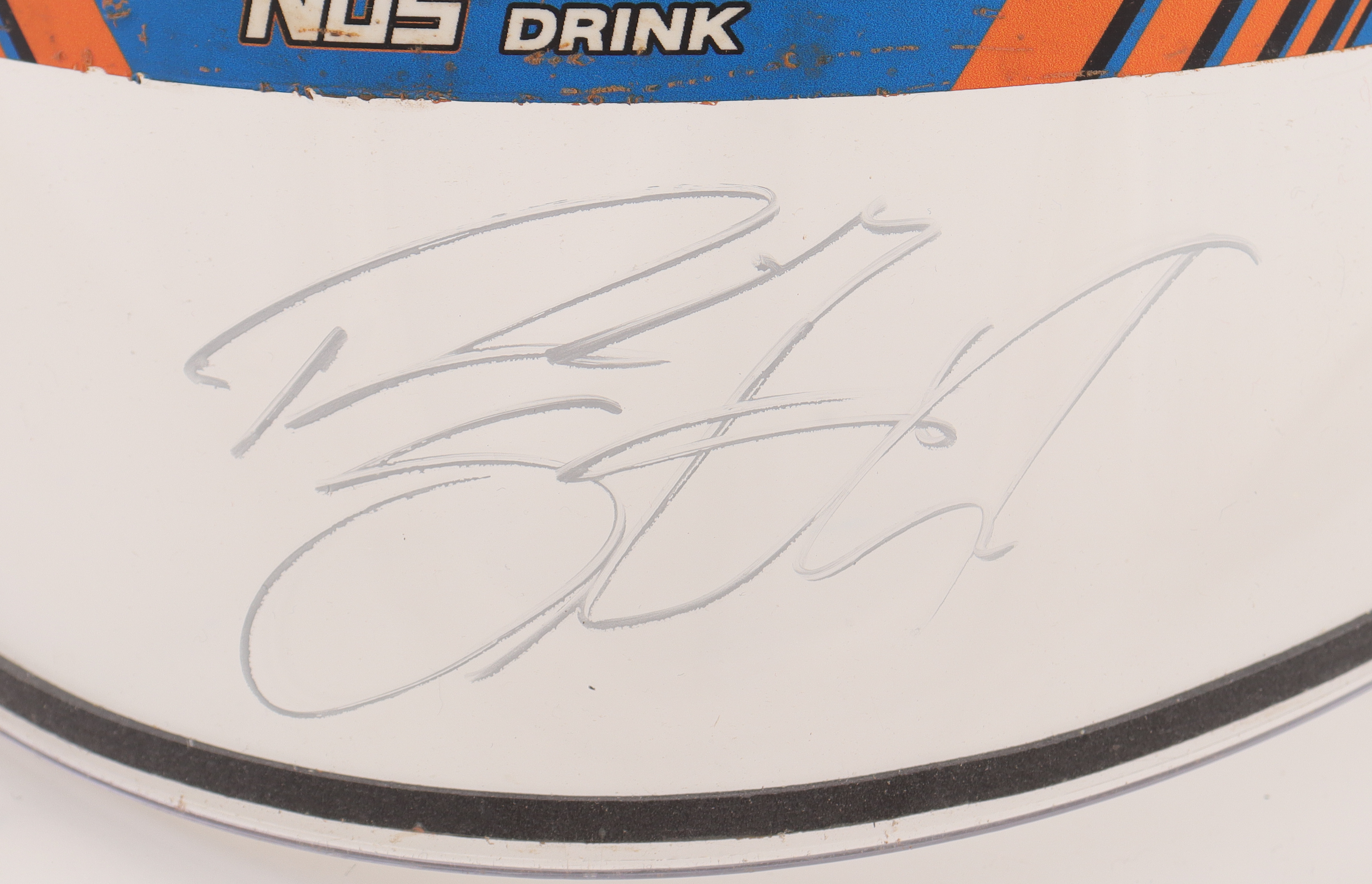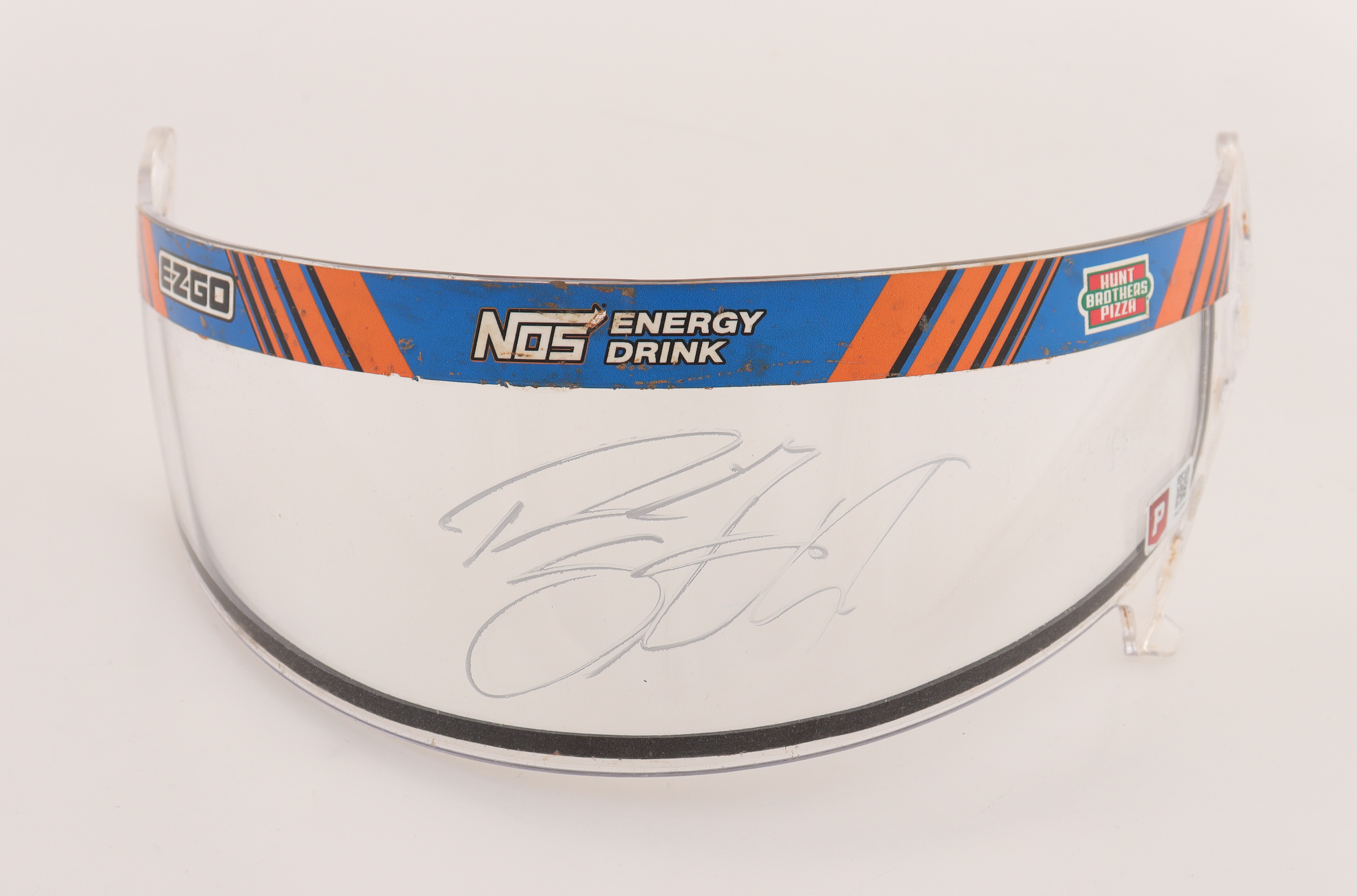 This visor was worn by Ricky Stenhouse Jr. during one or more NASCAR or dirt racing events. The visor is hand-signed by Stenhouse Jr.