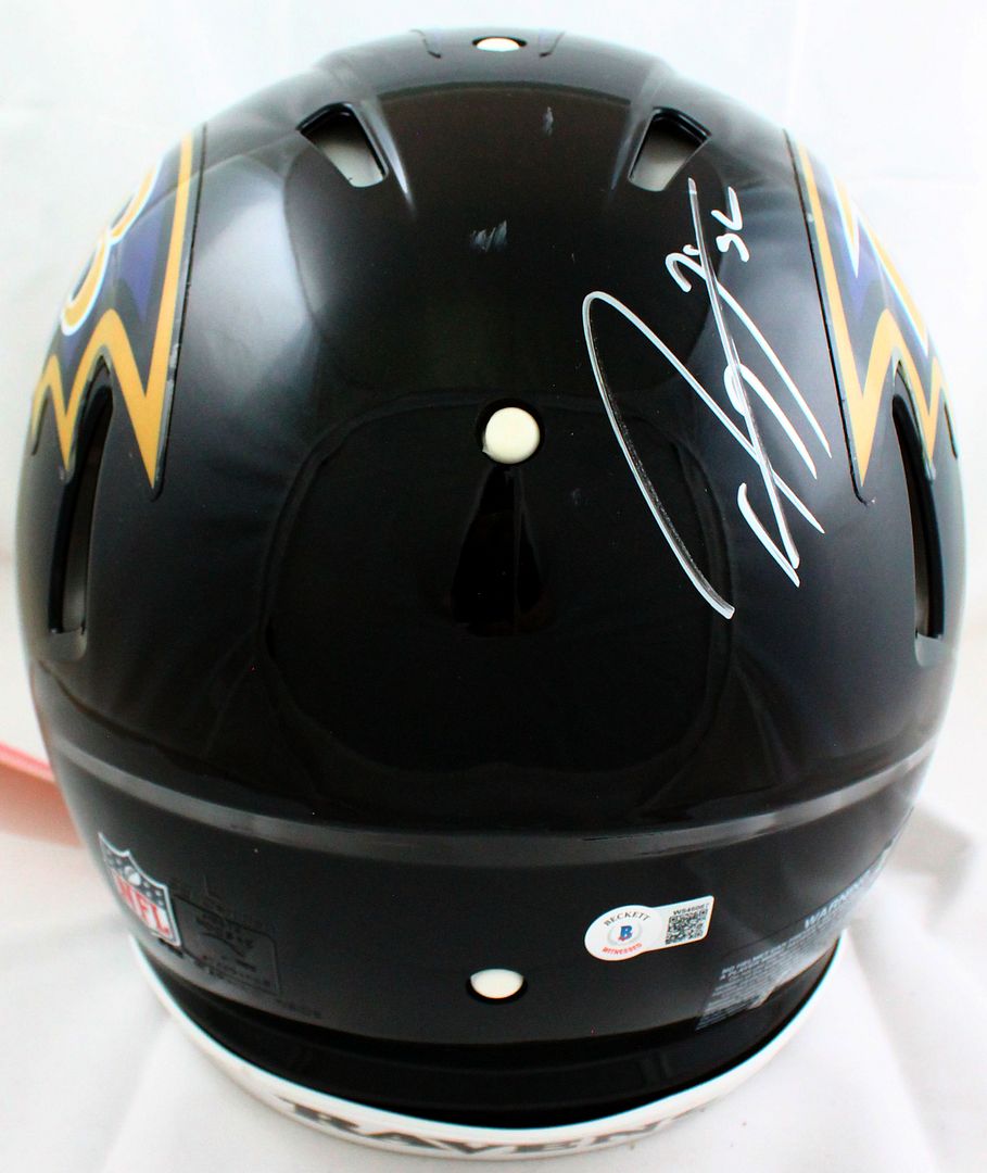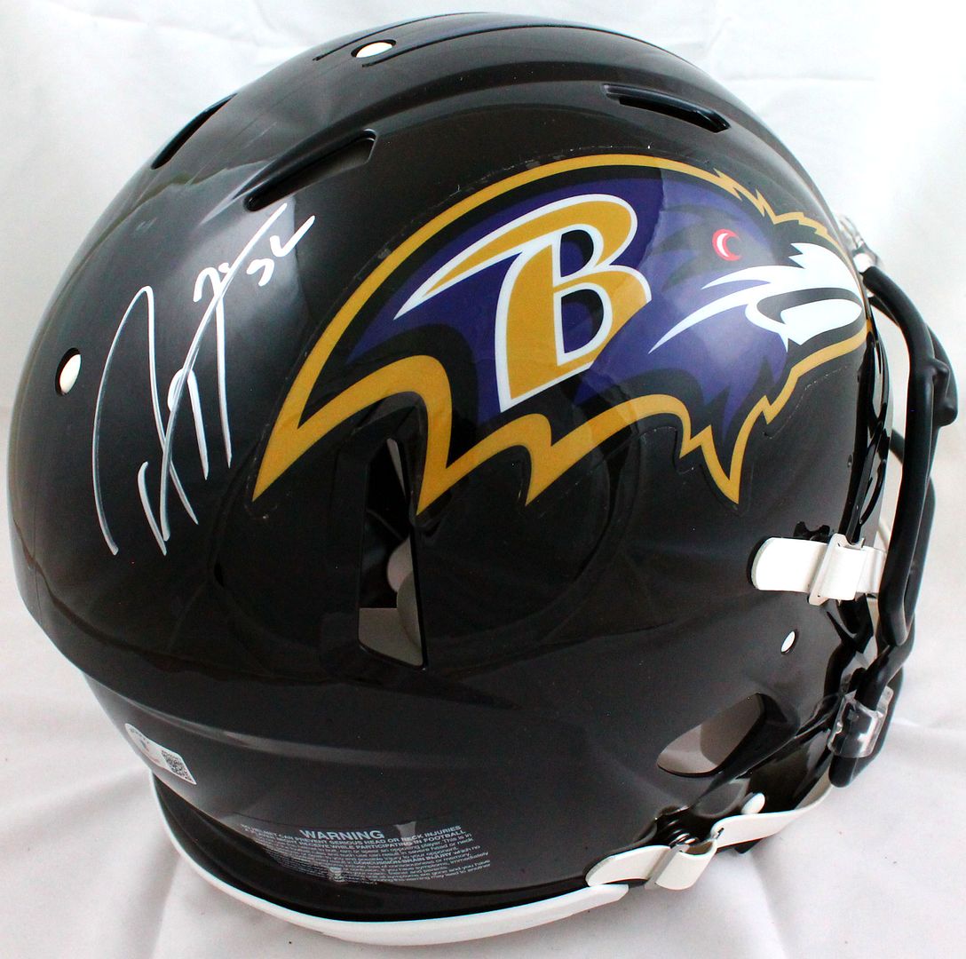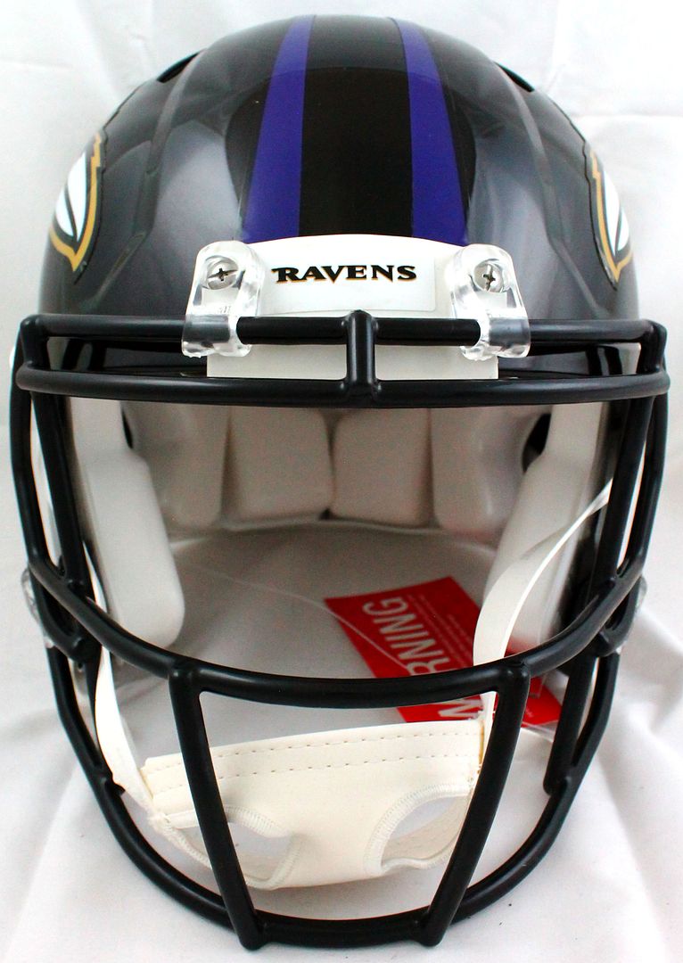 Riddell Baltimore Ravens full-size authentic on-field speed helmet. Hand-signed by Ray Lewis (HOF).