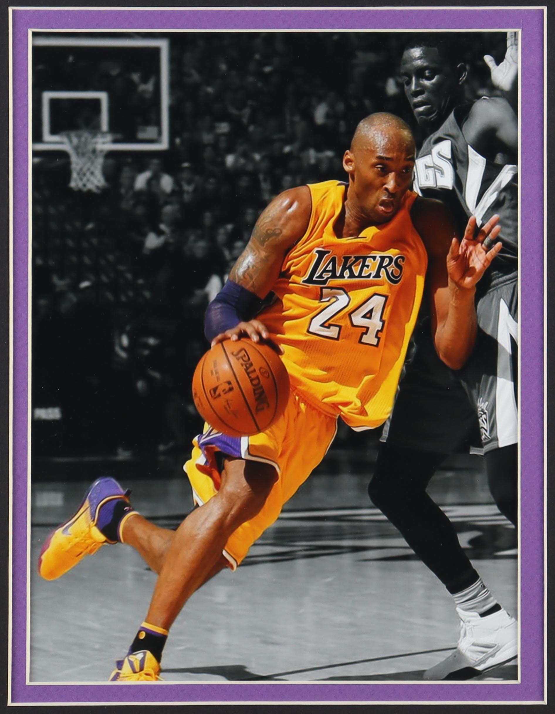 Custom frame measures 32" x 36" in size. Features an unsigned Kobe Bryant jersey and (2) pins.