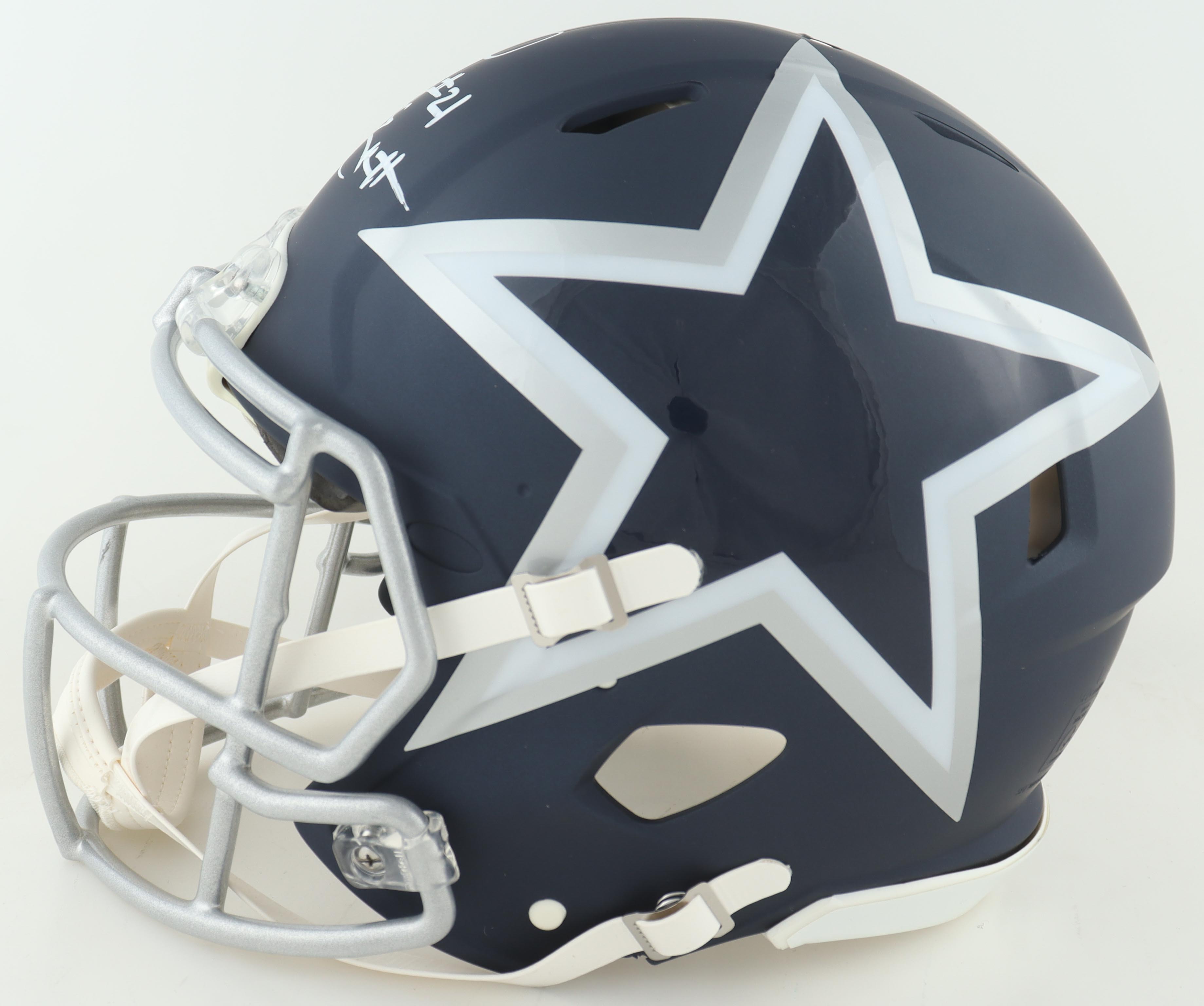 Riddell Dallas Cowboys full-size replica AMP alternate speed helmet. Hand-signed by Ezekiel Elliott.