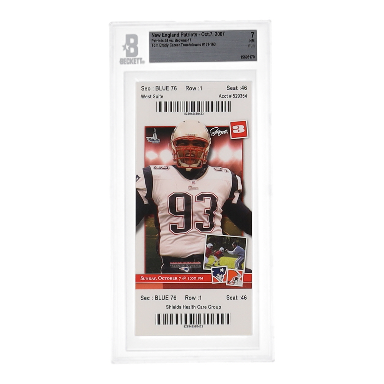 Ticket has been graded Beckett (BGS) 7. Please see photos for details regarding the condition of the ticket (New England Patriots - 34 vs. Cleveland Browns - 17).