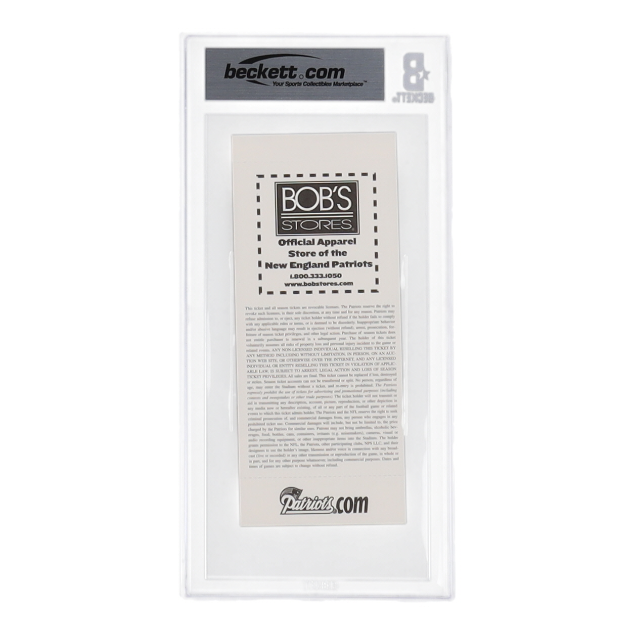 Ticket has been graded Beckett (BGS) 6. Please see photos for details regarding the condition of the ticket (New England Patriots - 26 vs. Miami Dolphins - 28).