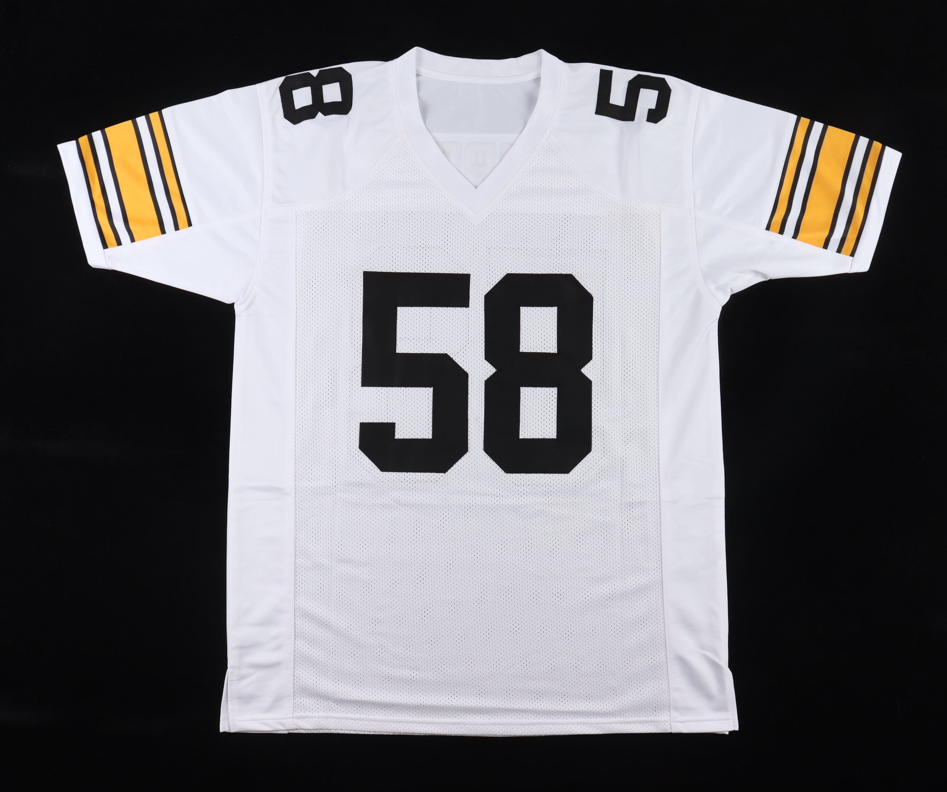 Custom jersey. Everything is sewn on, size XL. Hand-signed by Jack Lambert (HOF).