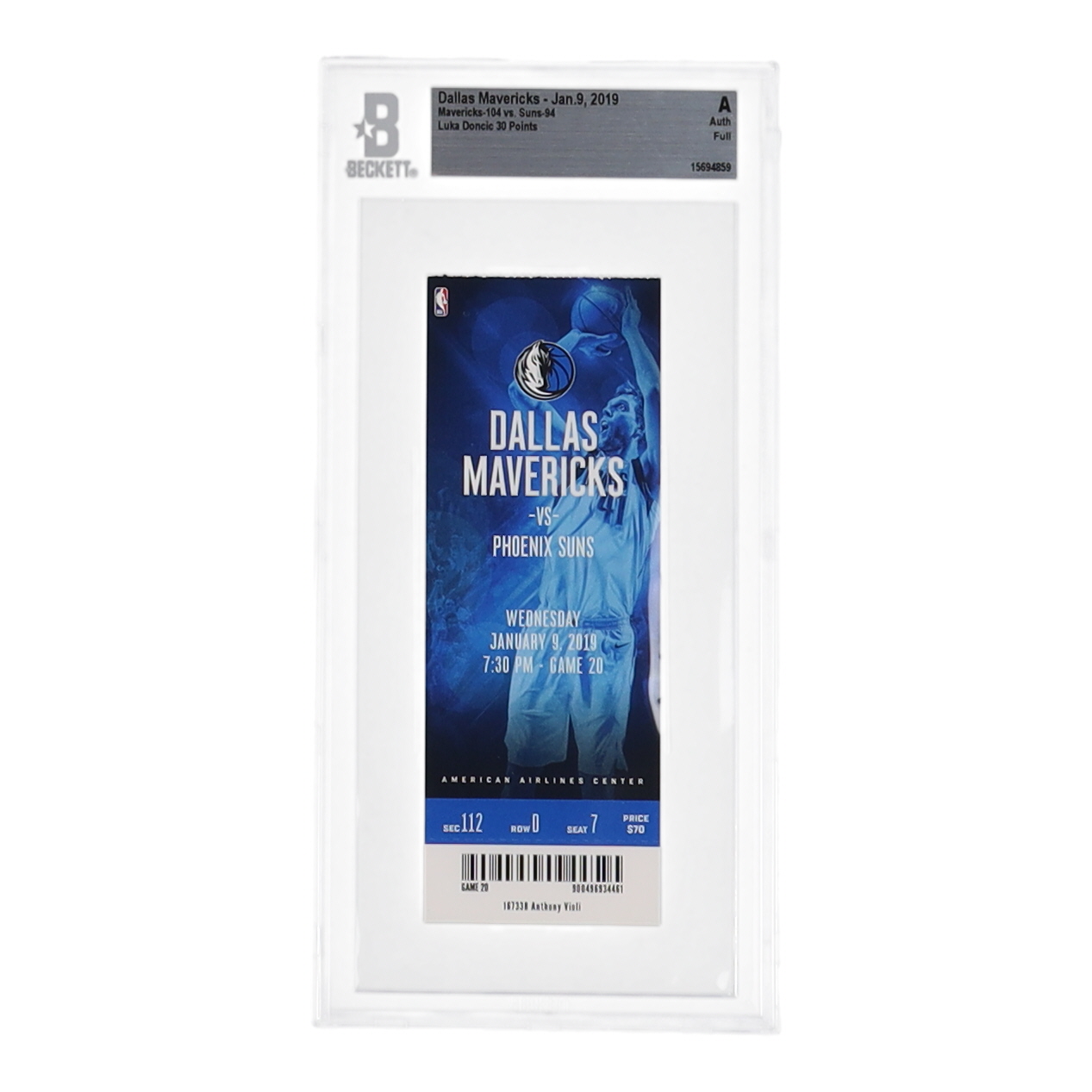 Ticket has been graded Beckett Authentic. Please see photos for details regarding the condition of the ticket (Dallas Mavericks - 104 vs. Phoenix Suns - 94).