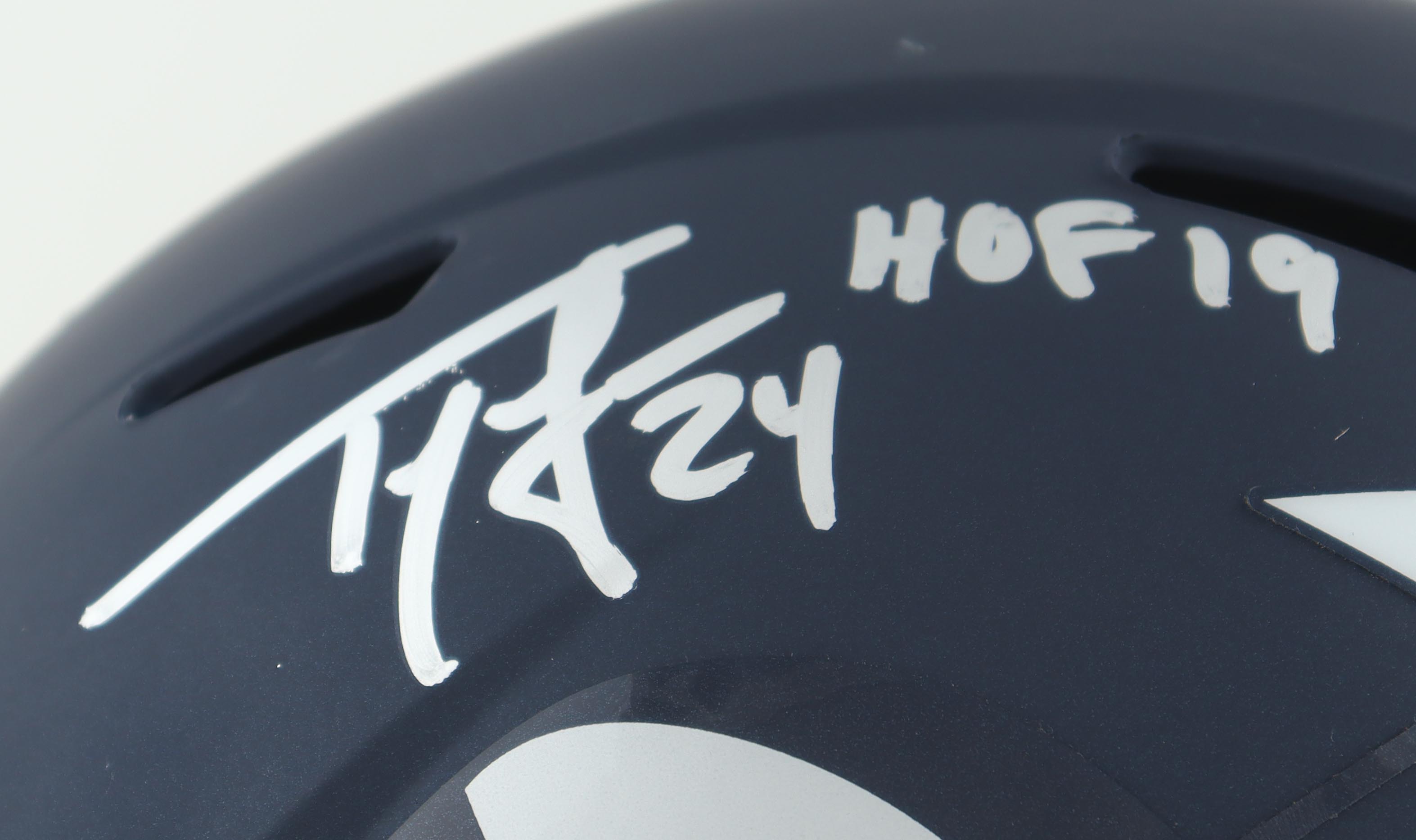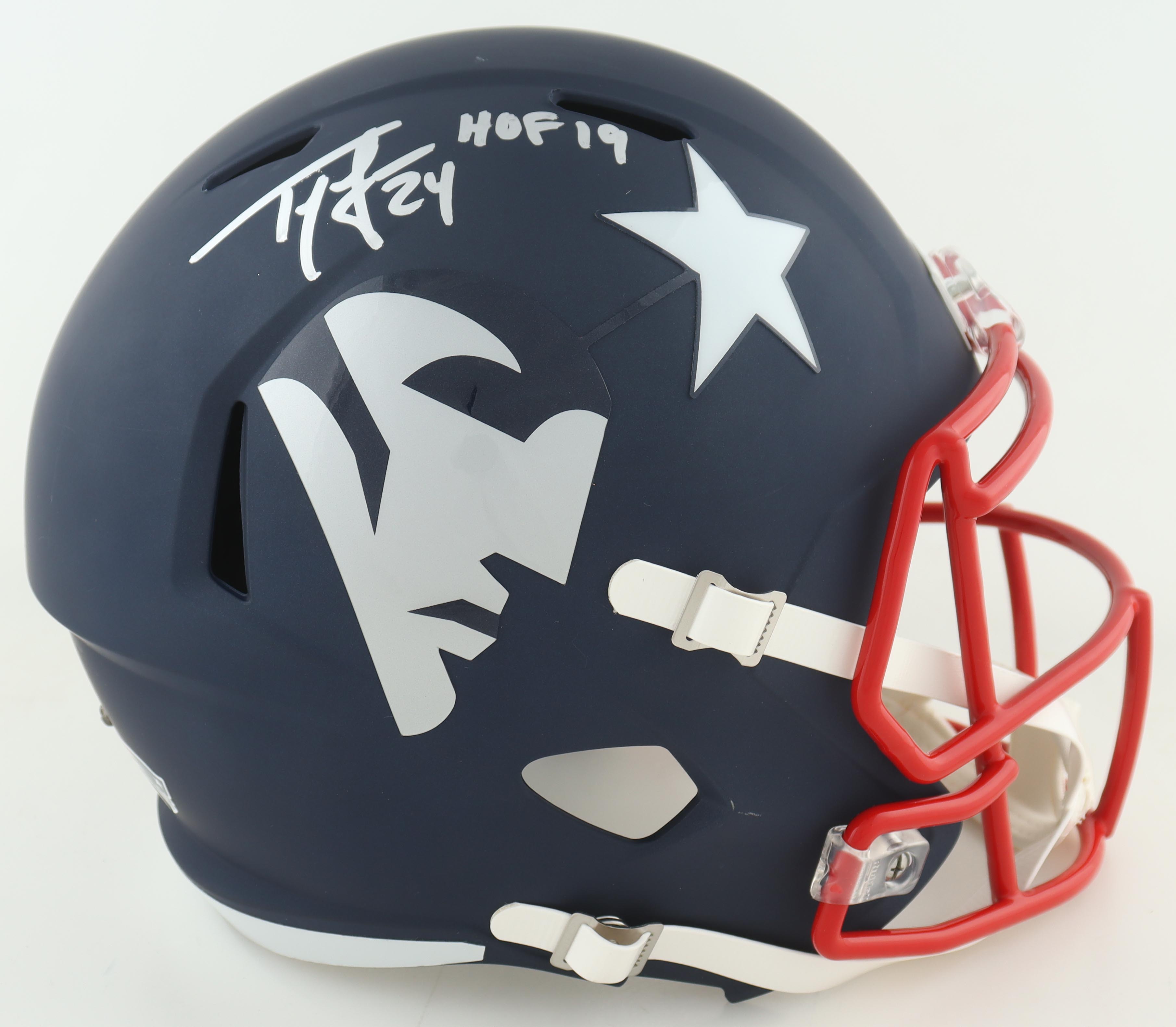 Ty Law Signed Patriots Full-Size AMP Alternate Speed Helmet Inscribed "HOF 19" (Beckett)