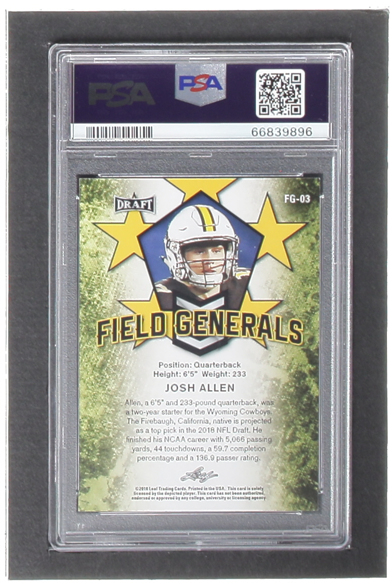 Josh Allen 2018 Leaf Draft Field Generals Gold #FG03 RC (PSA 10)