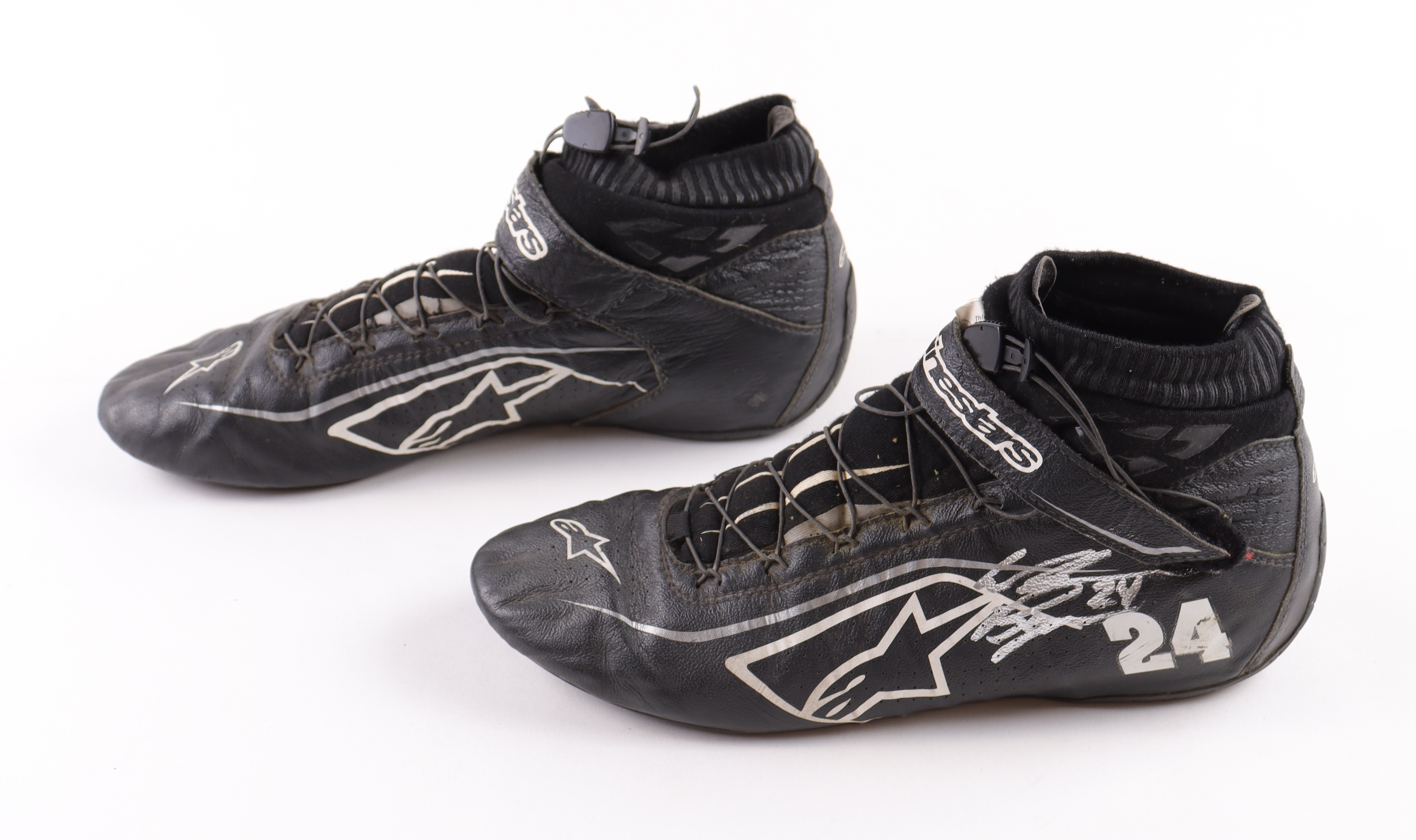 These shoes were worn by William Byron during one or more NASCAR events. The shoes are both hand-signed by William Byron.