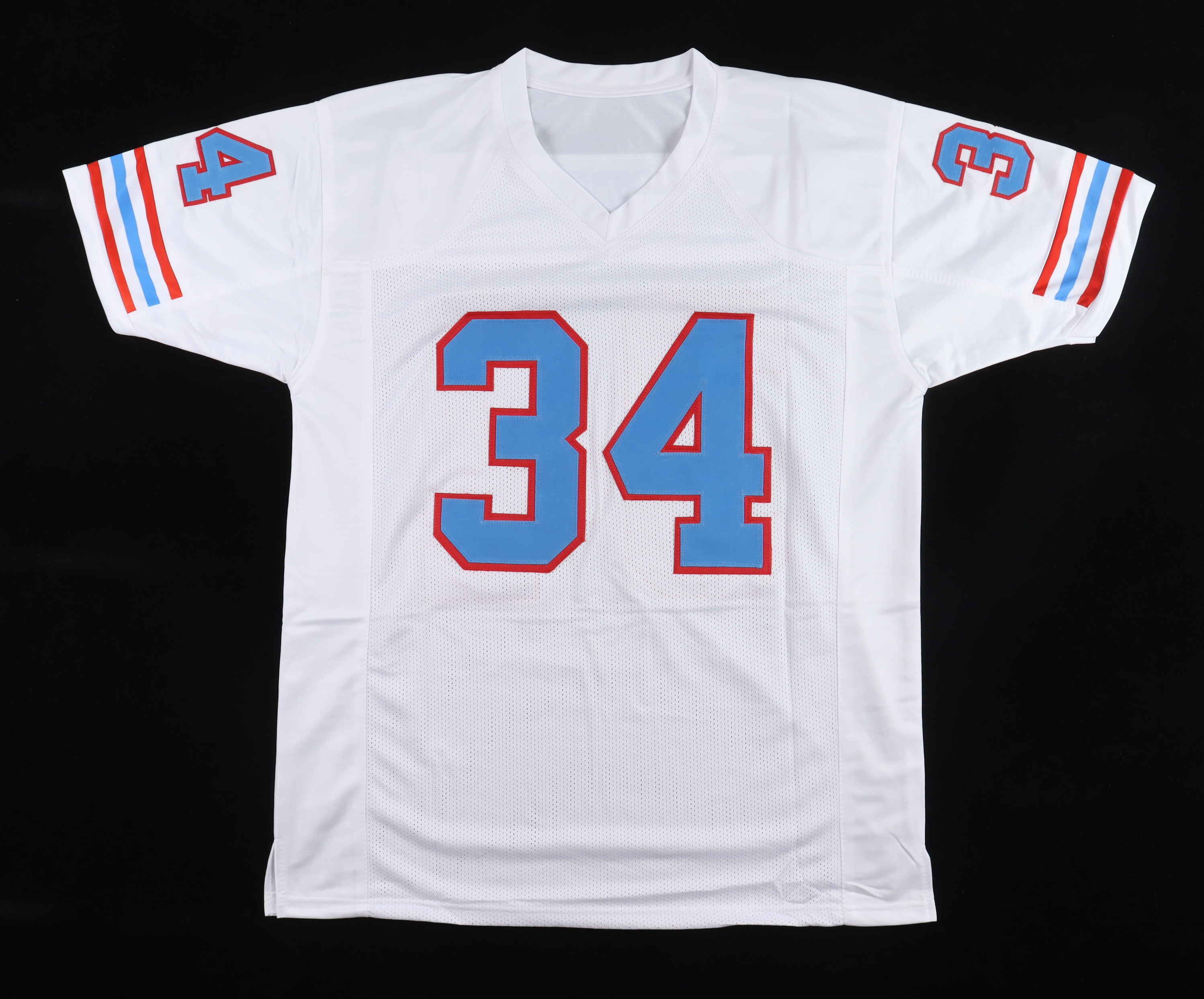 Custom jersey with everything sewn on, size XL. Hand-signed by Earl Campbell (HOF).