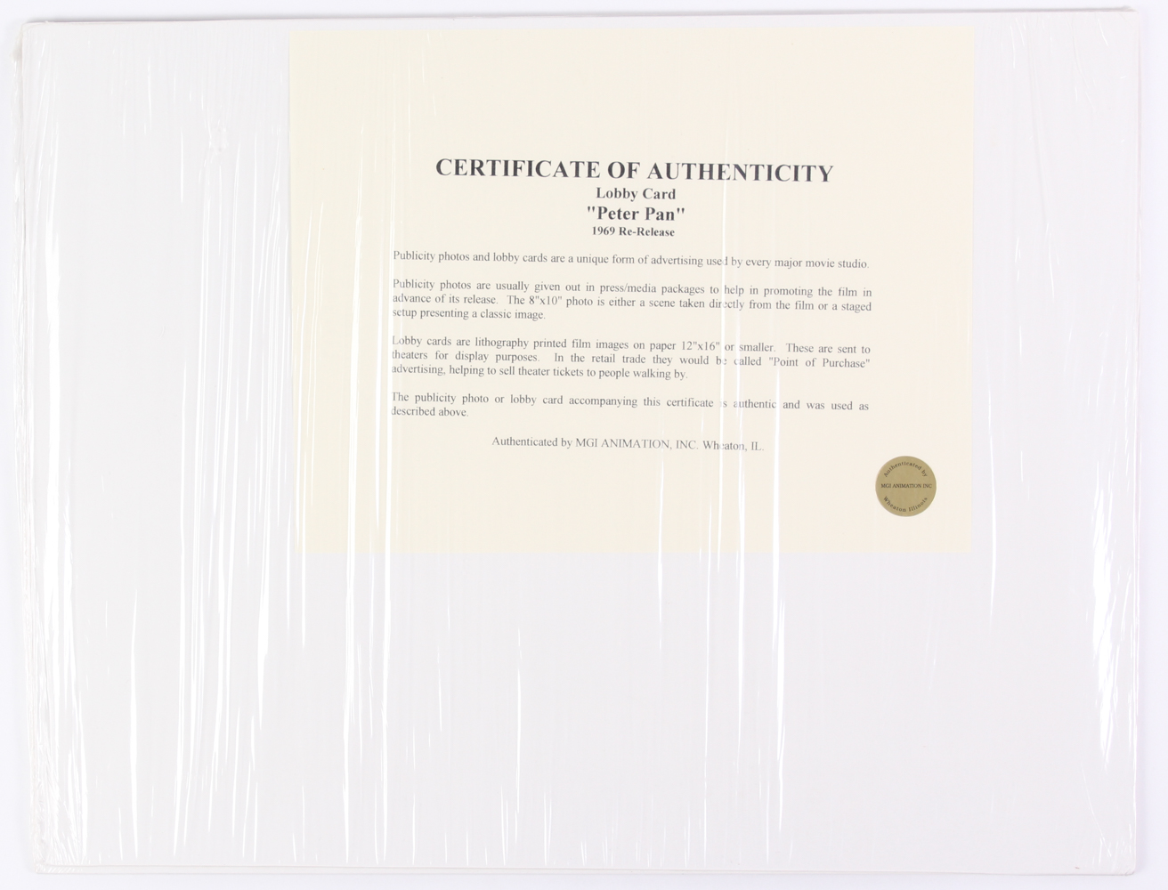 Custom matted display measures 14" x 18" in size. Features a vintage 1969 re-release lobby card from Peter Pan. Please note that the custom matted display is sealed in its original plastic. See photos for more details.