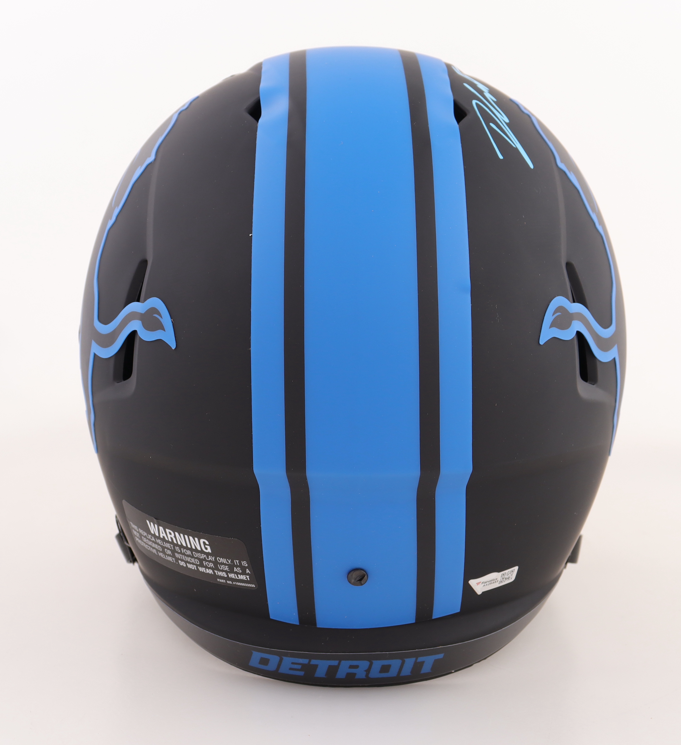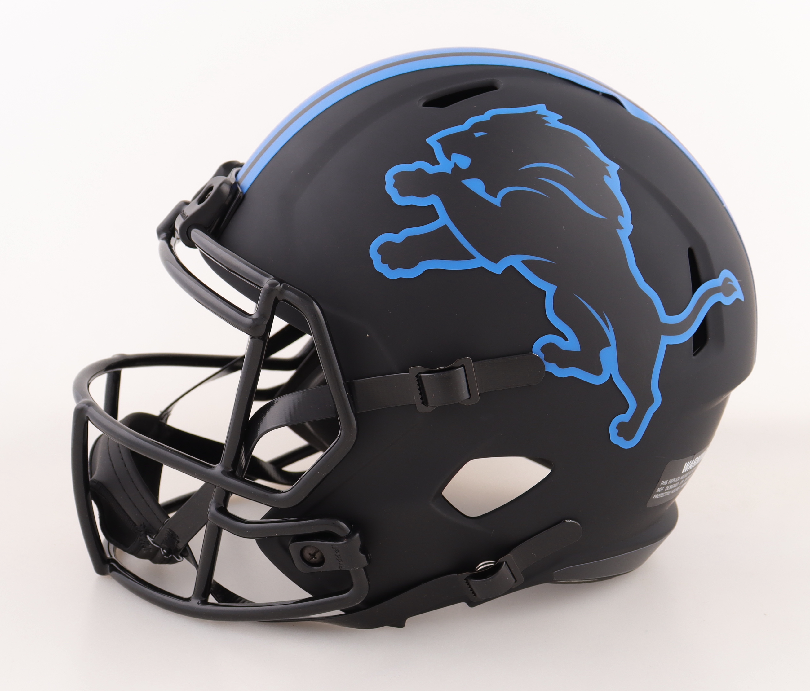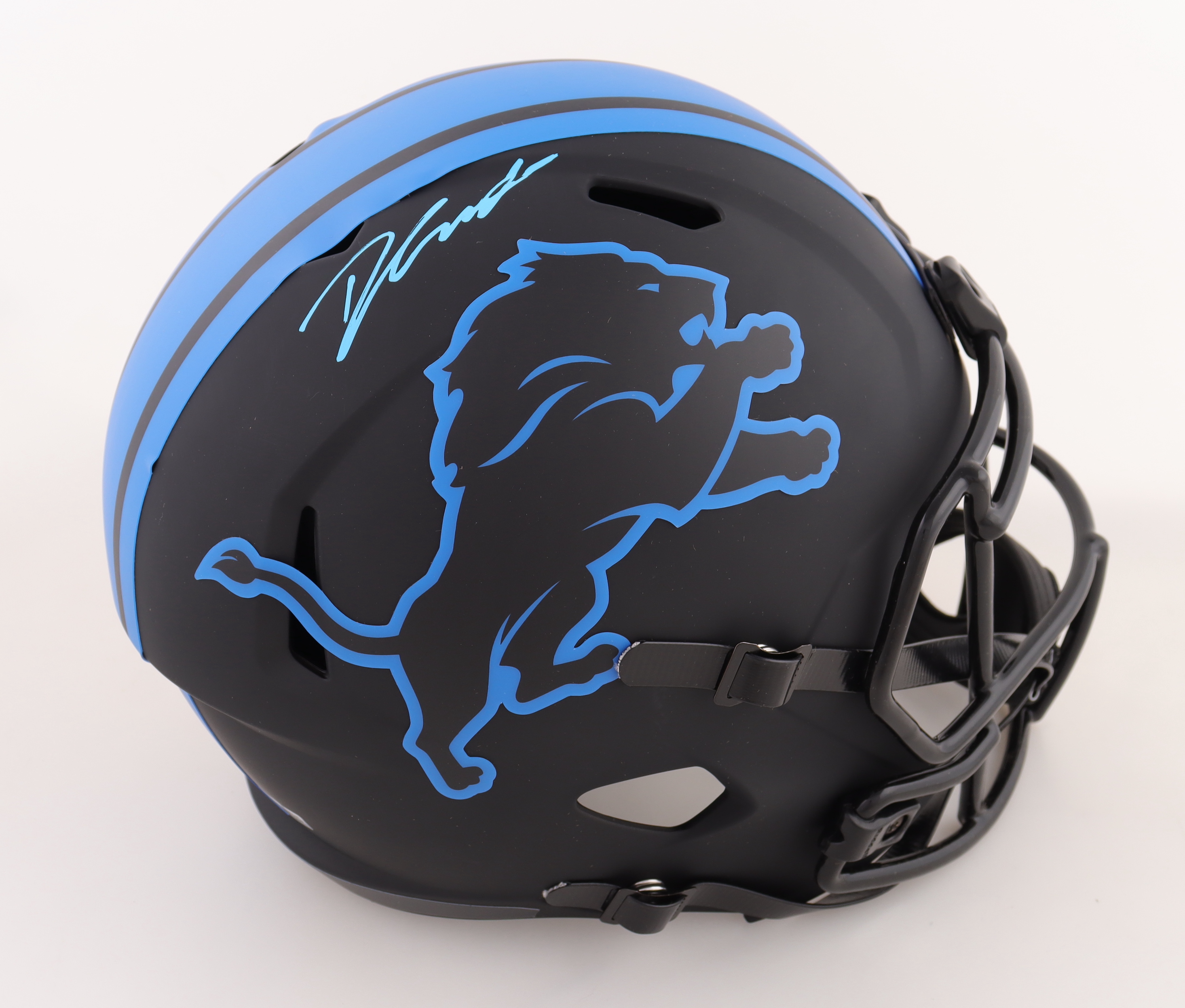 Riddell Detroit Lions full-size replica Eclipse Alternate speed helmet has been hand-signed by D'Andre Swift.
