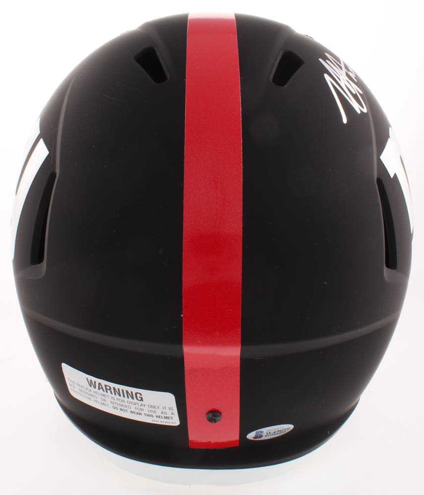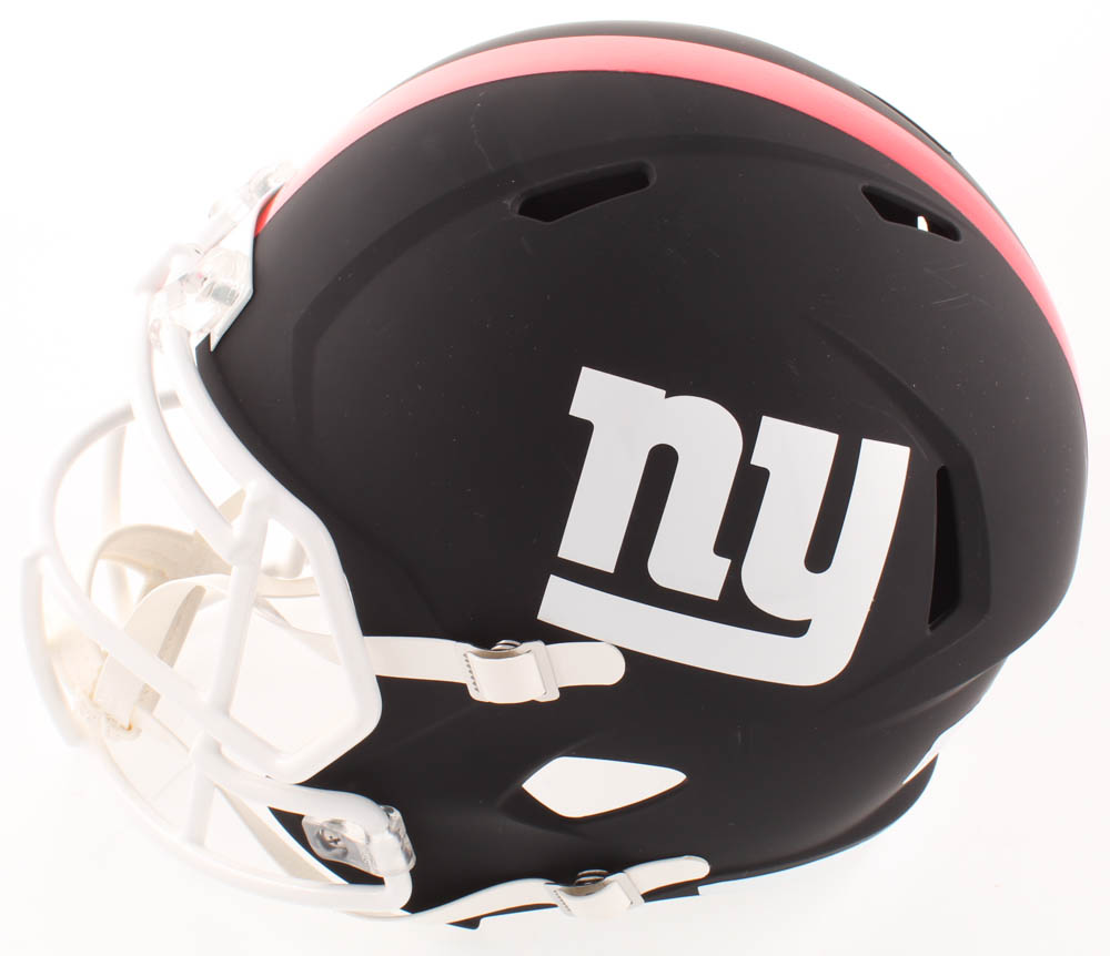 Riddell New York Giants full-size replica matte black speed helmet. Hand-signed by Michael Strahan (HOF).