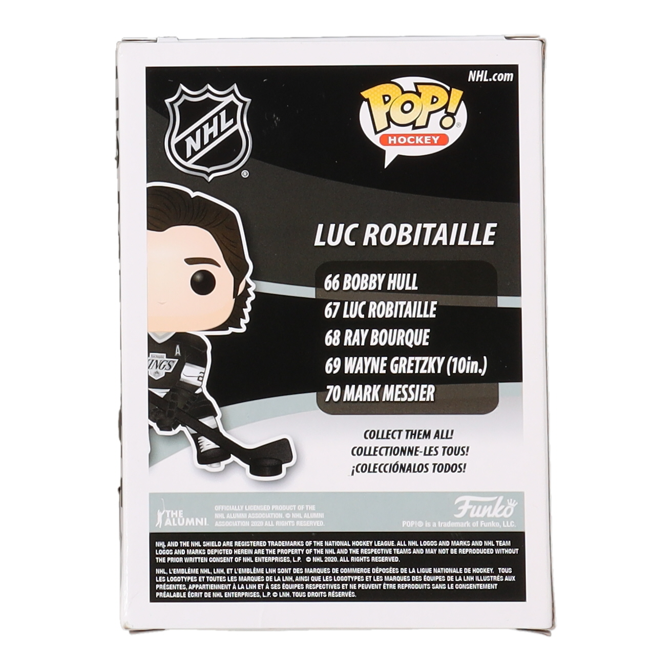 Vinyl figure measures approximately 4" tall and has been hand-signed on the packaging by Luc Robitaille (Los Angeles Kings).