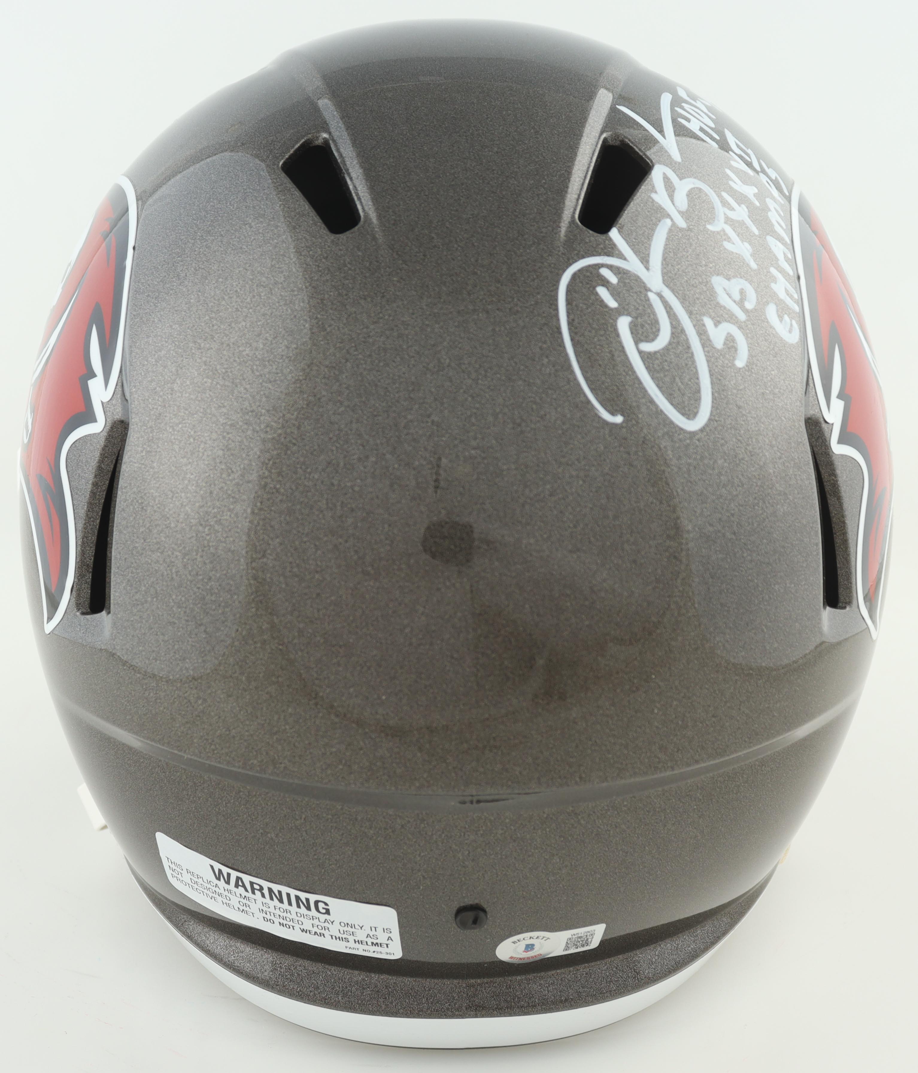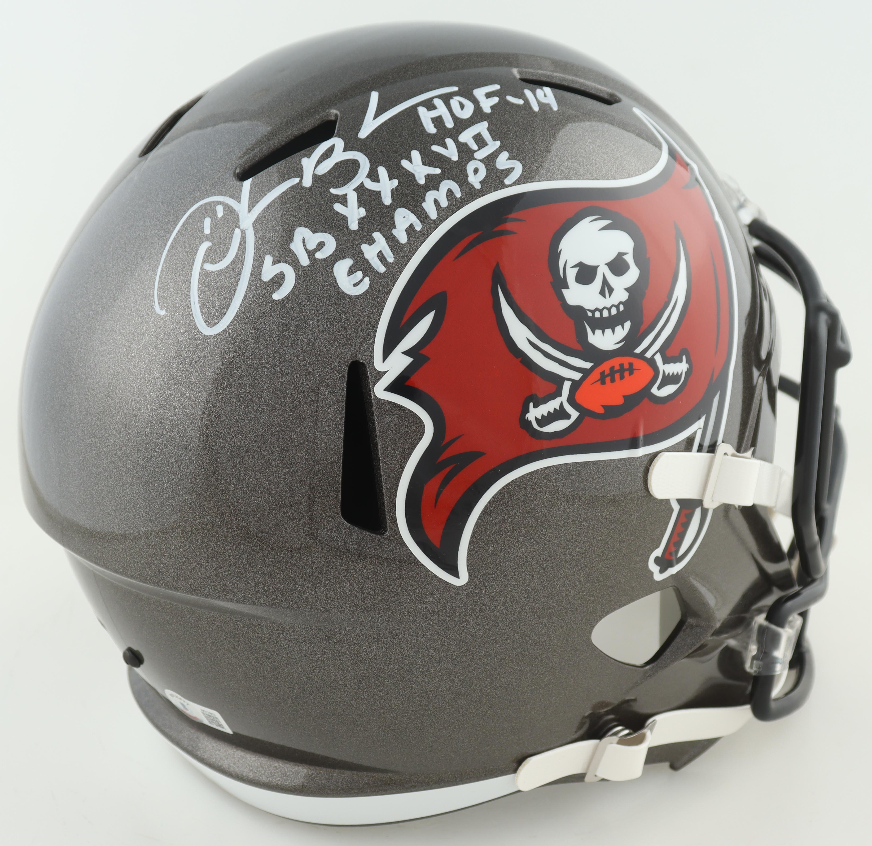 Riddell Tampa Bay Buccaneers full-size replica speed helmet. Hand-signed and inscribed by Derrick Brooks (HOF).