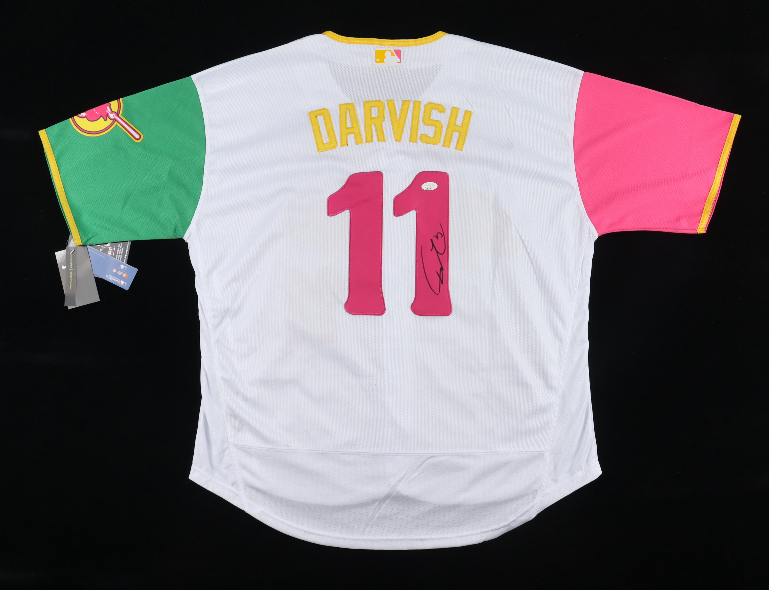 Jersey is size 48, everything sewn on. Has been hand-signed by Yu Darvish.